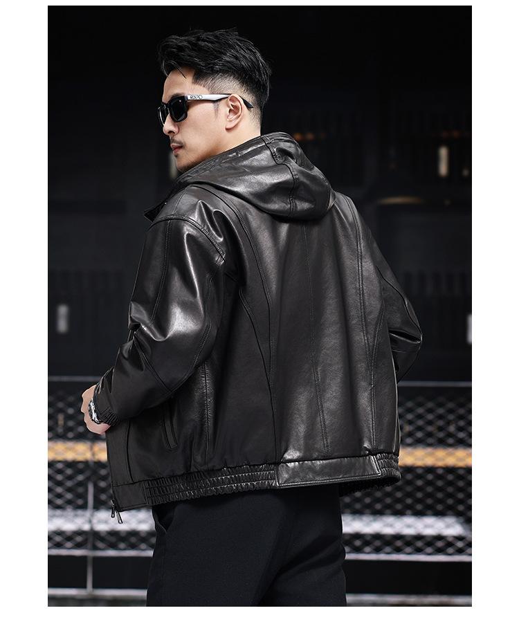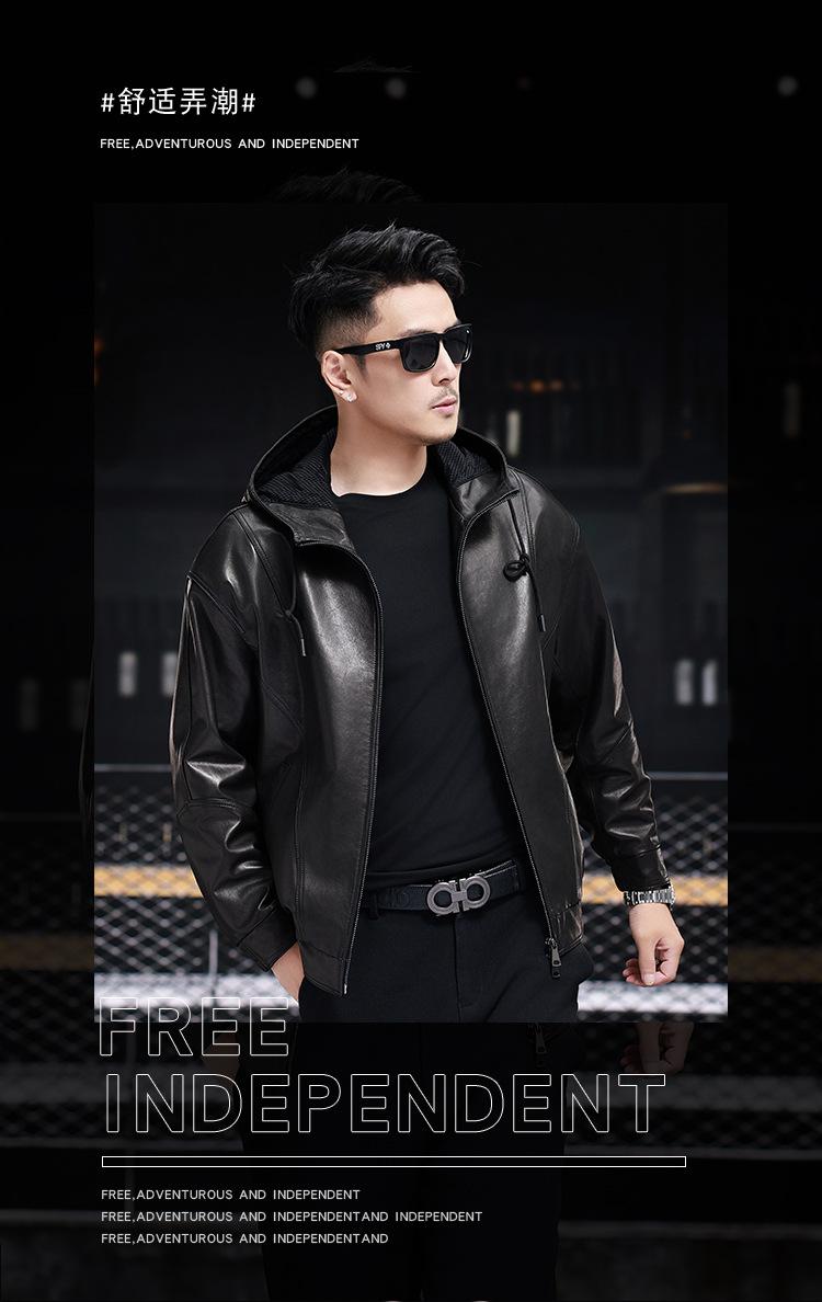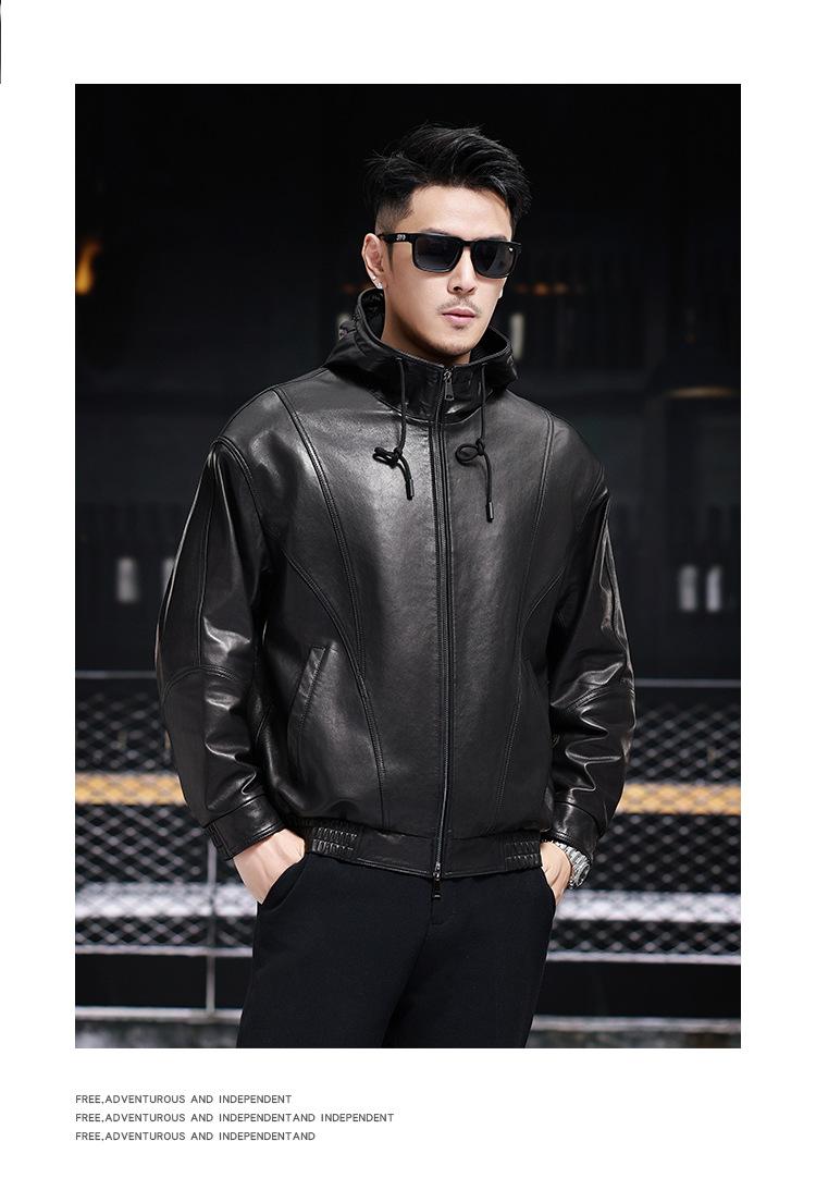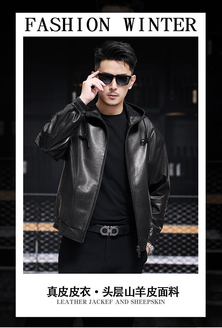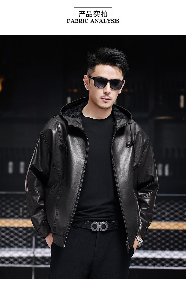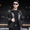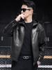 Nueva Chaqueta de Otoño Holgada con Capucha de Piel Genuina de Primera Capa de Cabra Haining para Hombre