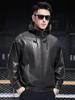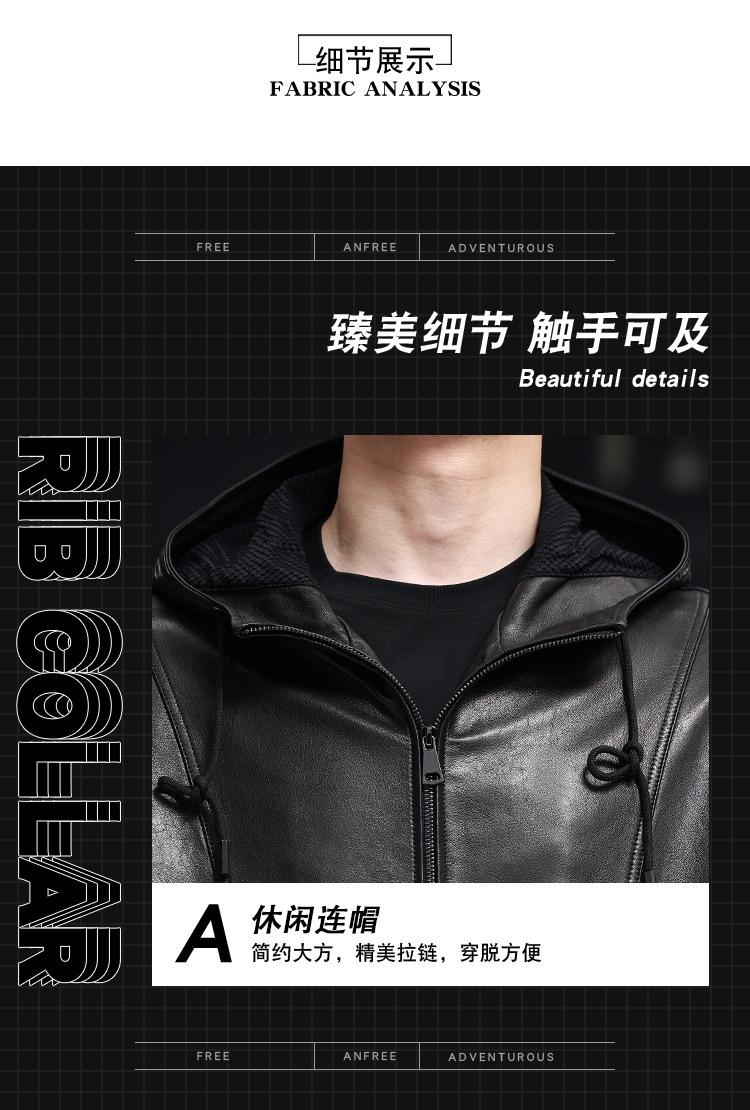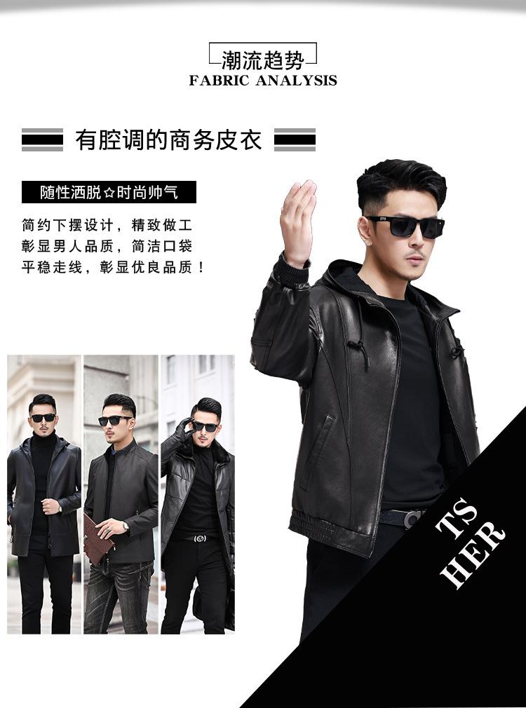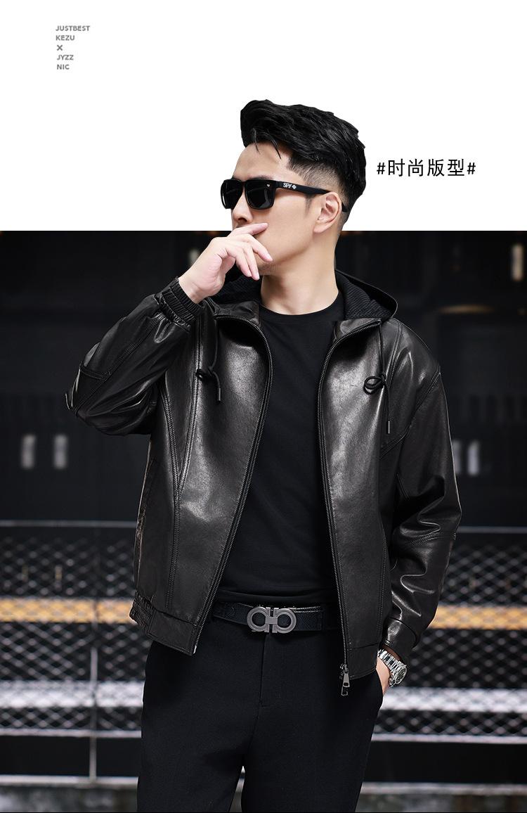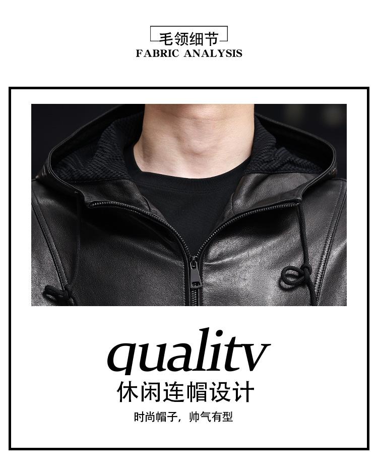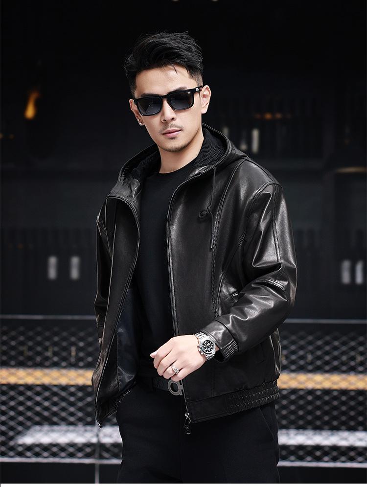 Nueva Chaqueta de Otoño Holgada con Capucha de Piel Genuina de Primera Capa de Cabra Haining para Hombre