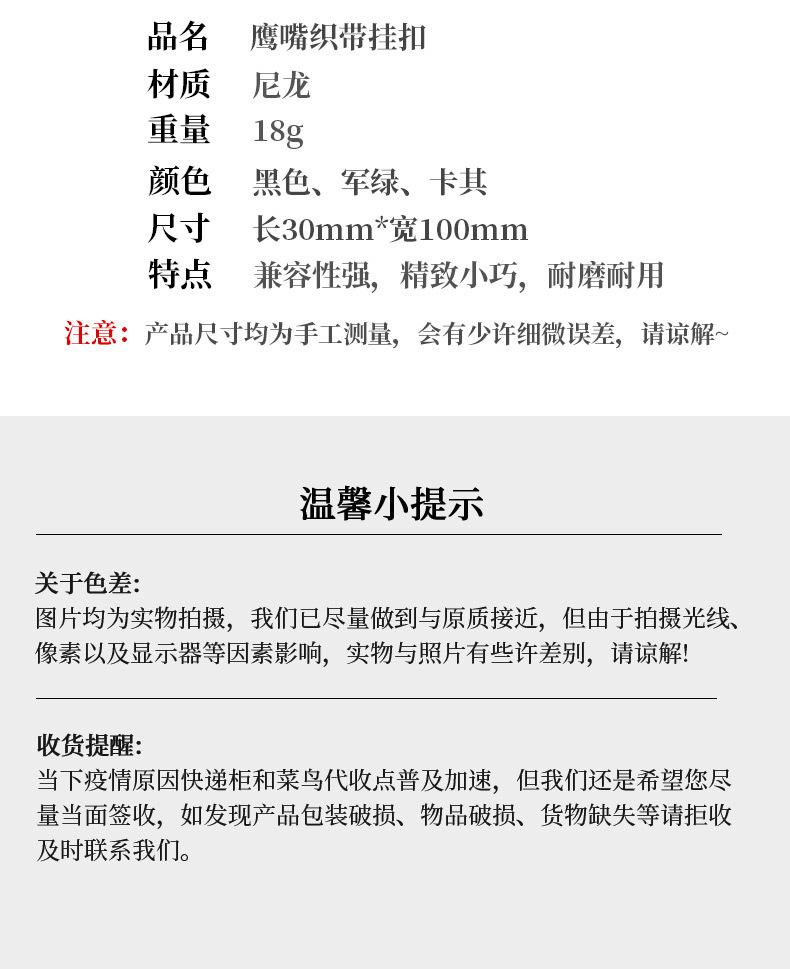 Mosquetón táctico para exteriores, accesorio para llavero, hebilla colgante multifuncional para cinturón, gancho de escalada de cinta de nailon, hebilla colgante con forma de boca de águila