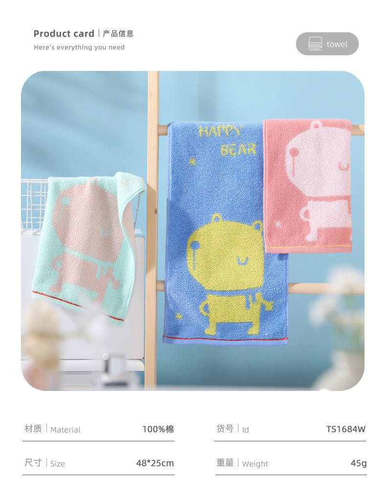 Toalla de algodón dorada toalla para niños 48*25 suave absorbente patrón de oso de dibujos animados una generación de necesidades diarias