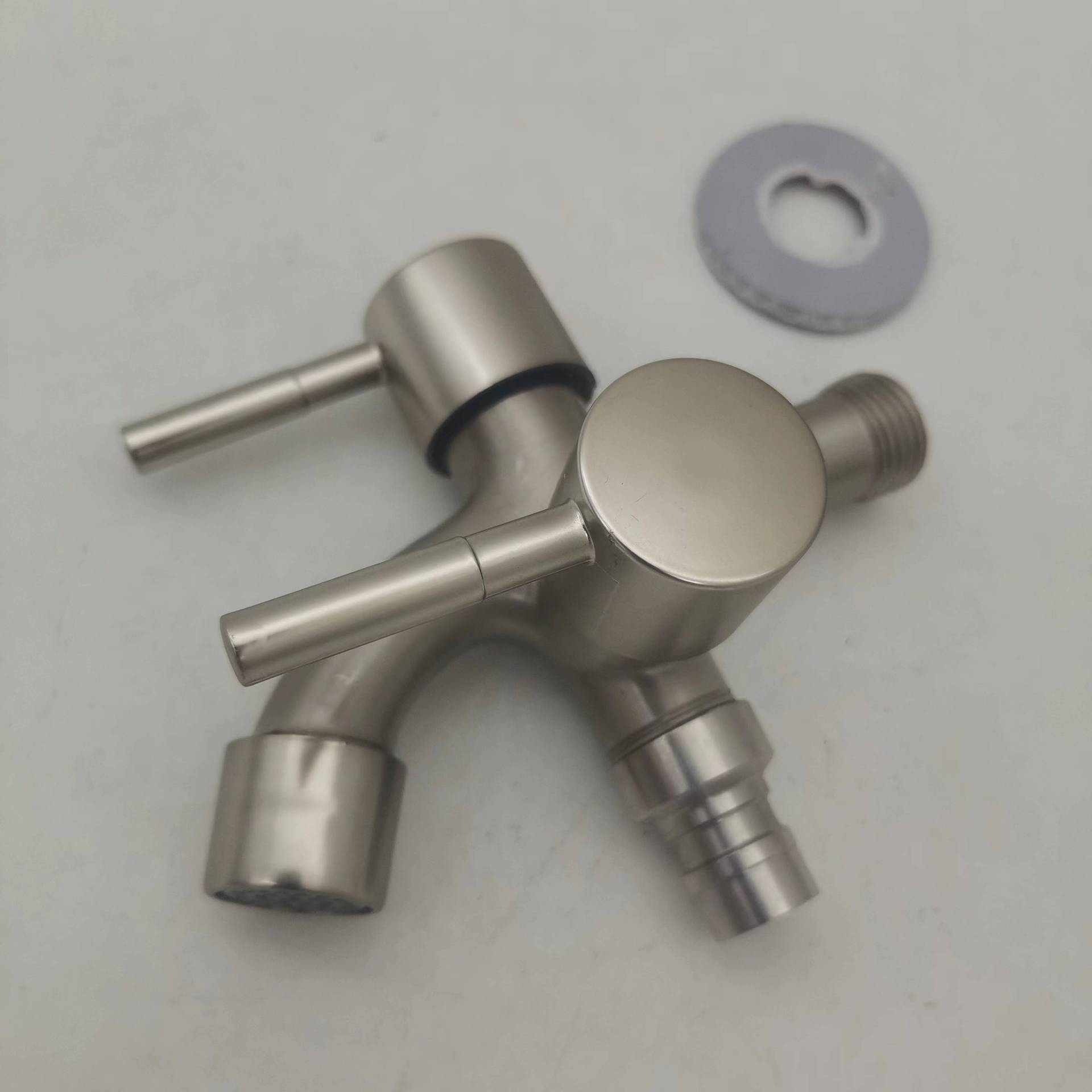 Grifo multifuncional de una entrada y dos salidas con trefilado de aleación para balcón, inodoro y baño.