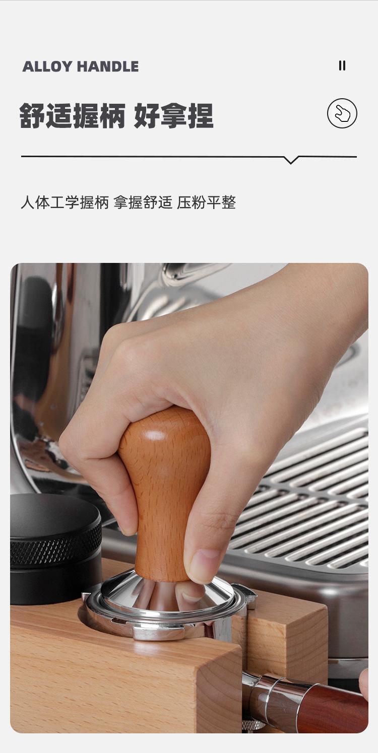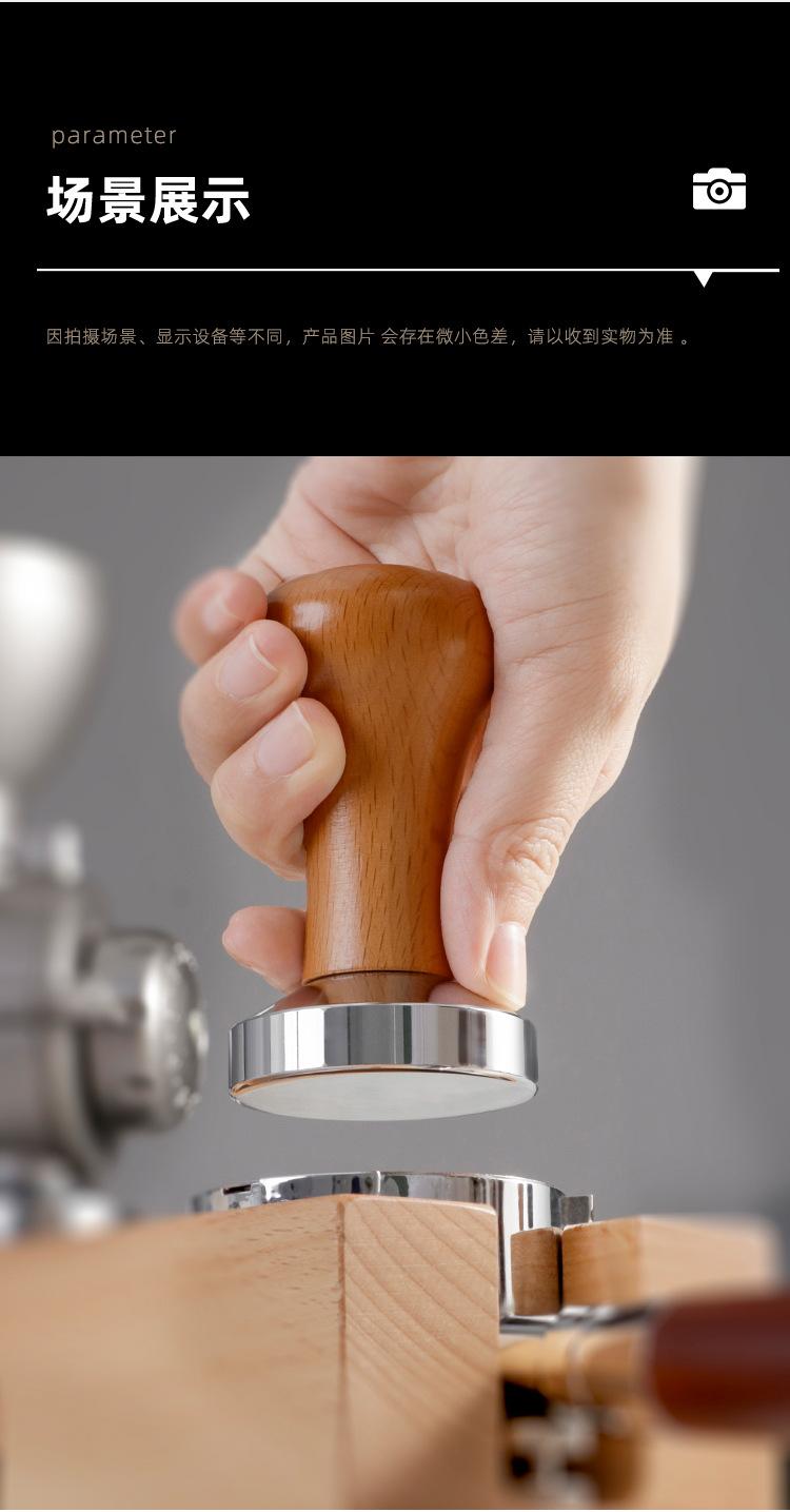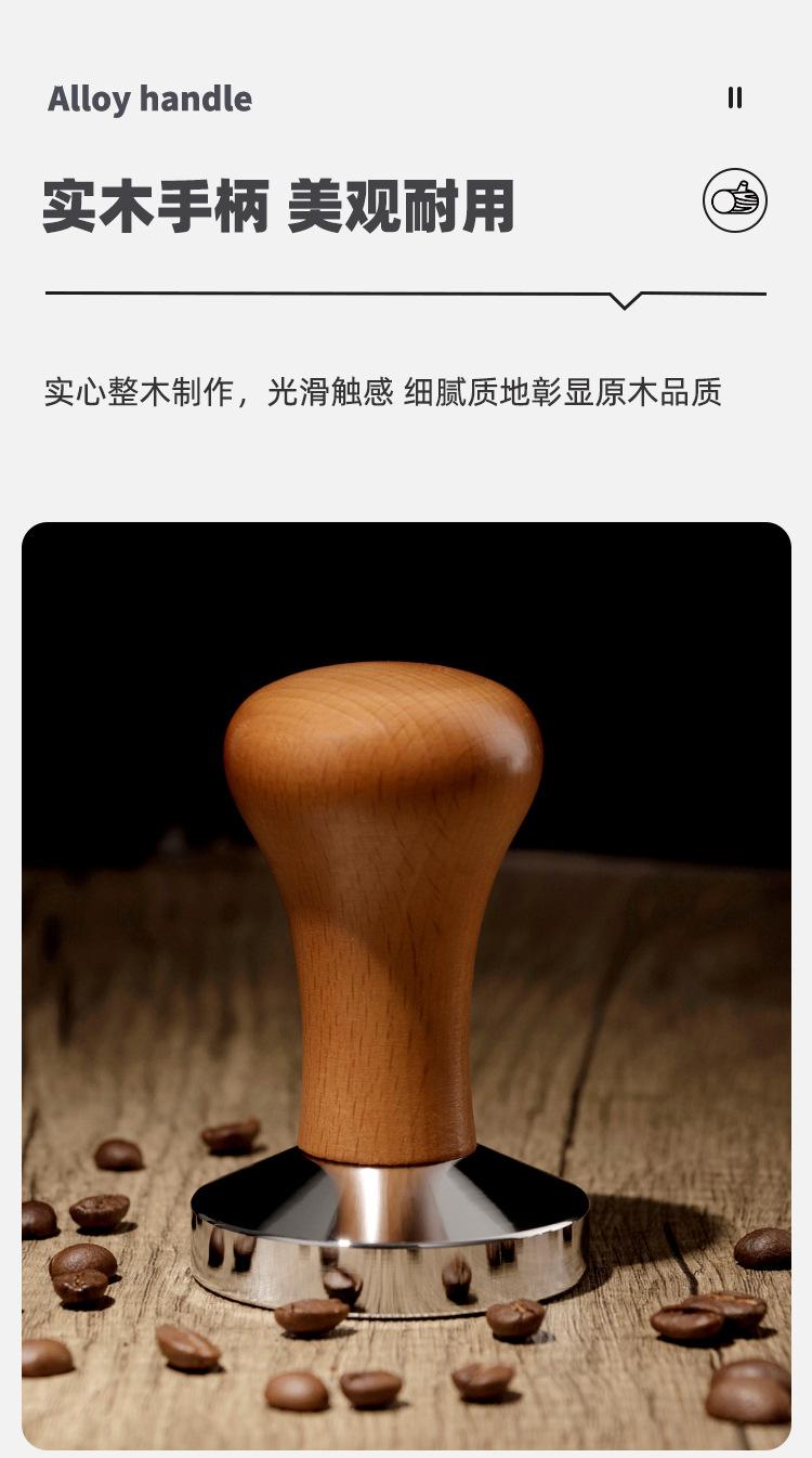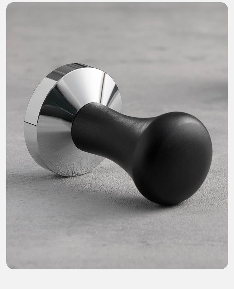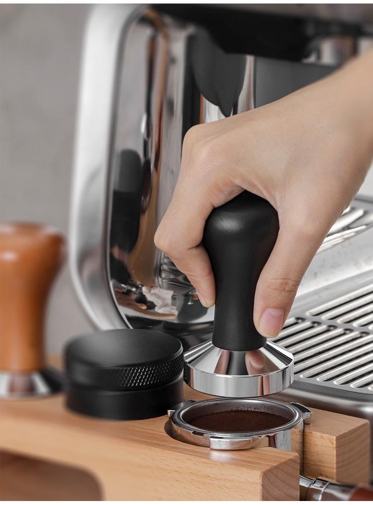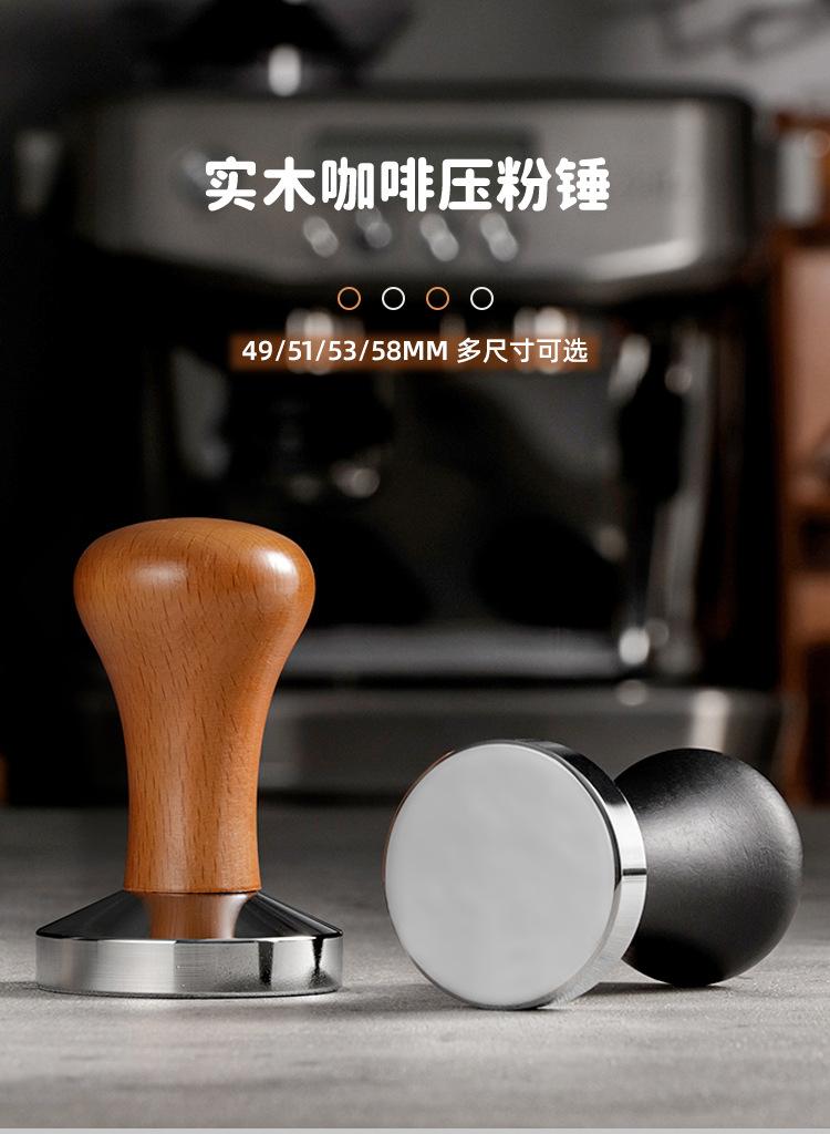 Prensa de café en polvo de acero inoxidable, prensa de café en polvo, martillo de 51 mm, máquina de café con martillo de madera maciza, llenadora a presión sólida de 58 mm con mango de madera