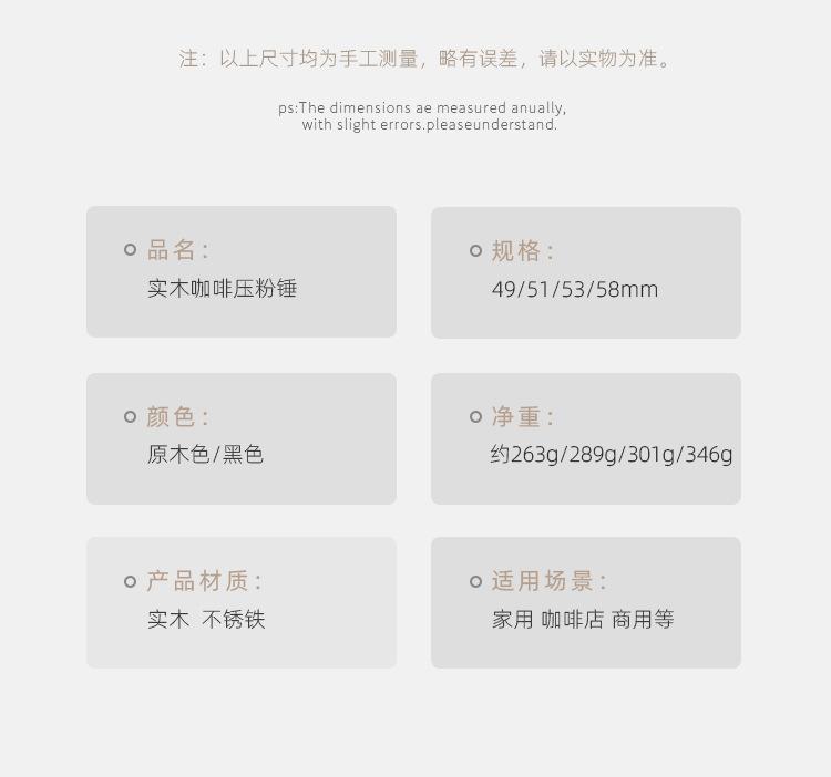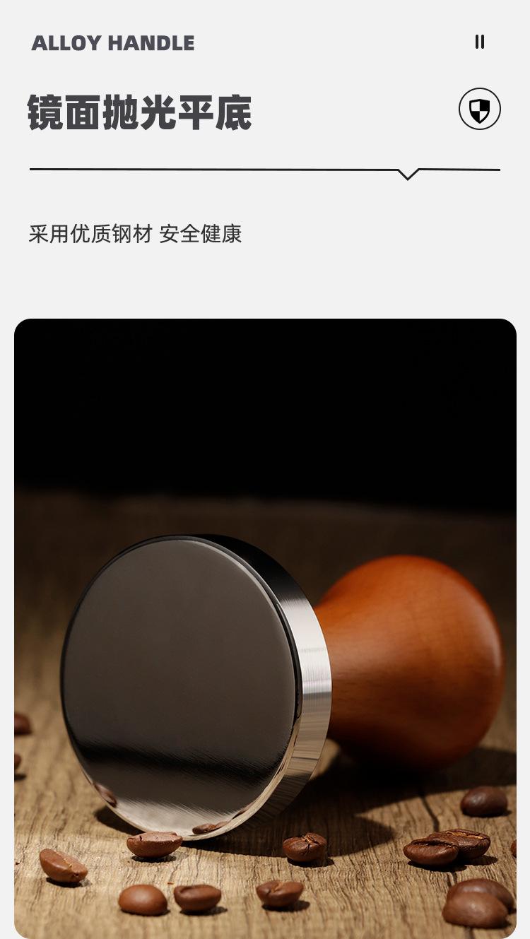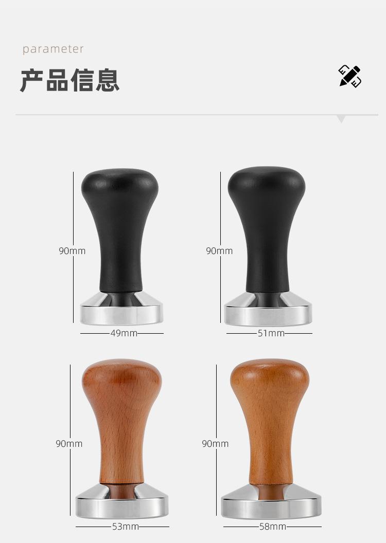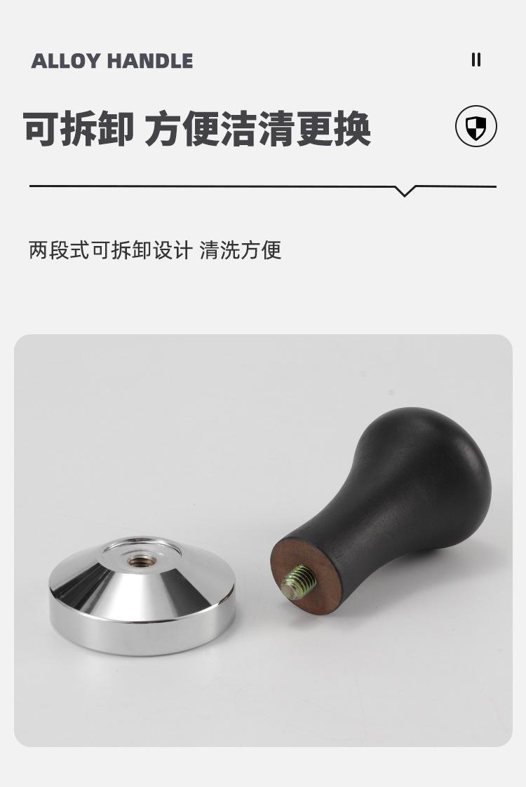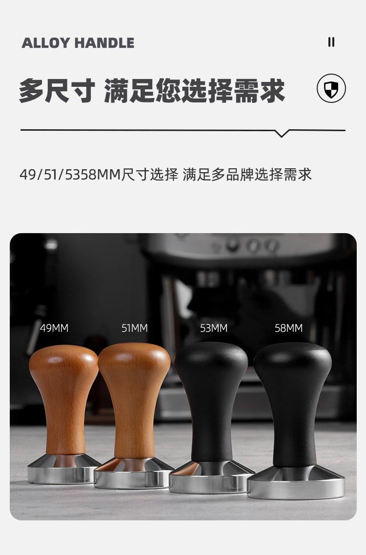 Prensa de café en polvo de acero inoxidable, prensa de café en polvo, martillo de 51 mm, máquina de café con martillo de madera maciza, llenadora a presión sólida de 58 mm con mango de madera