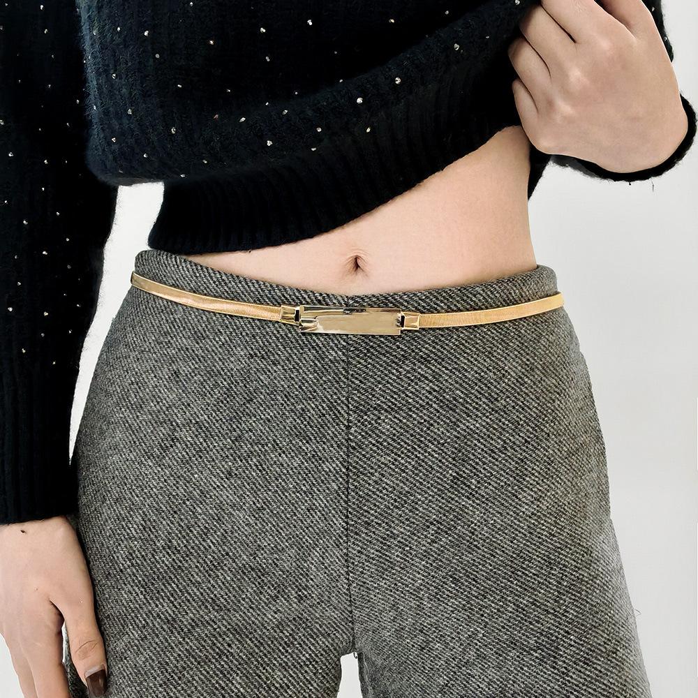 Nuevo Cinturón Coreano para Mujer de Metal sin Hebilla Invisible Elástico Hebilla Elástica Moda Simple Combinable Decorativo para la Cintura