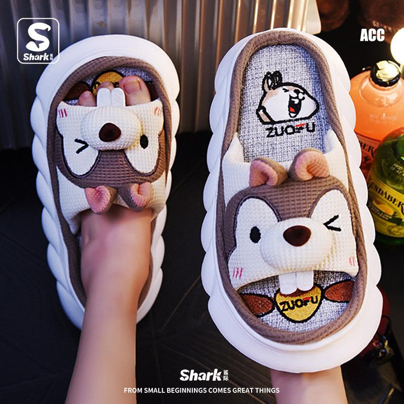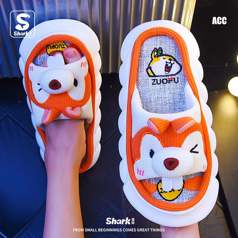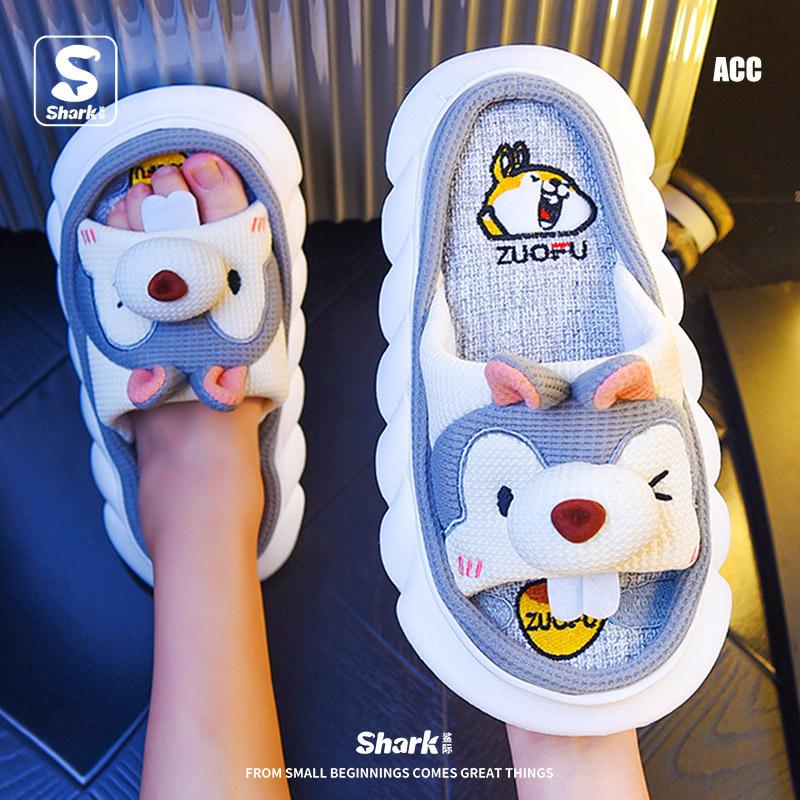 Pantuflas de lino para las cuatro estaciones, lindas zapatillas de casa con diseño de tiburón de dibujos animados, de algodón y lino, para interiores, silenciosas y resistentes al paso de la mierda. Venta al por mayor transfronteriza.