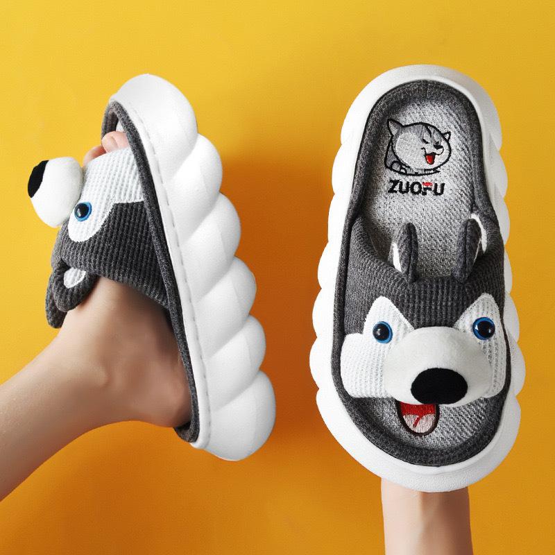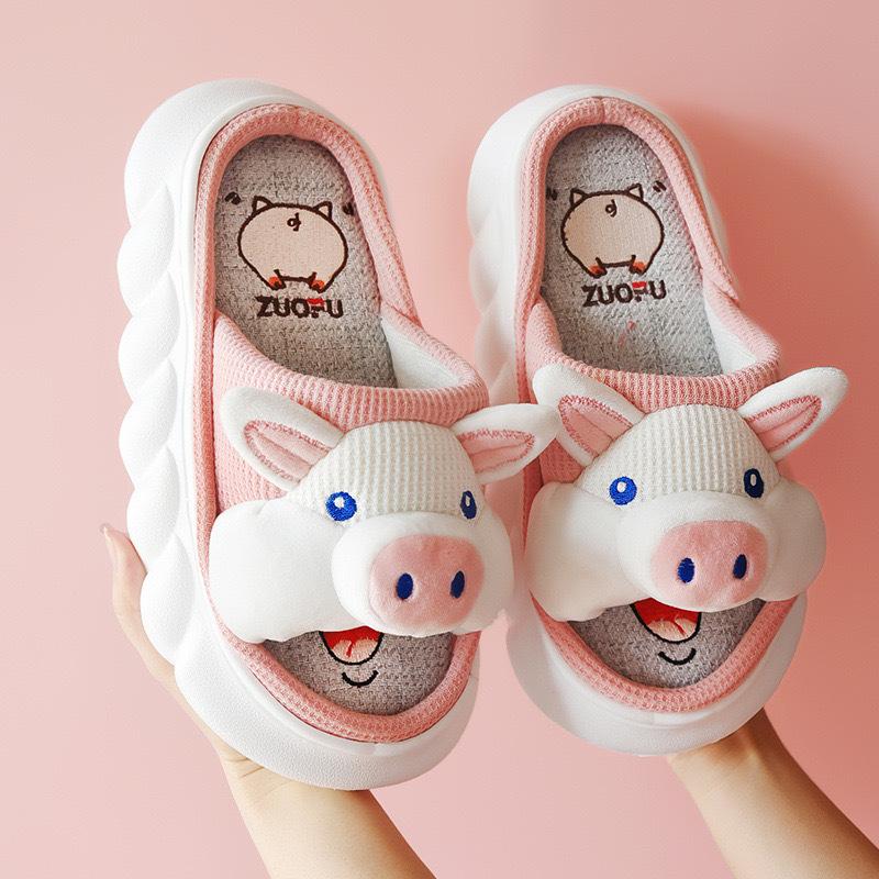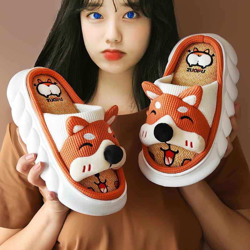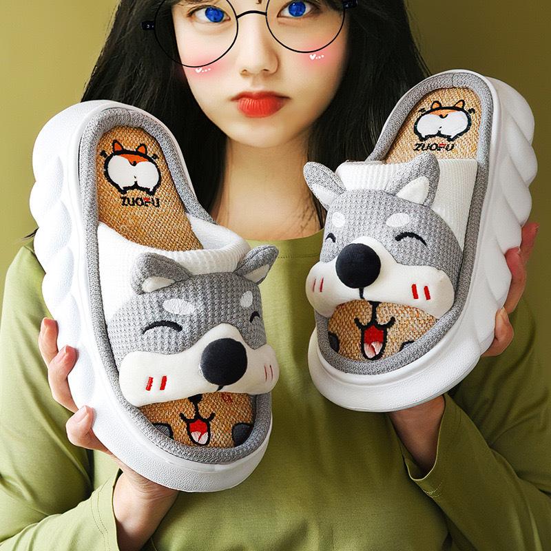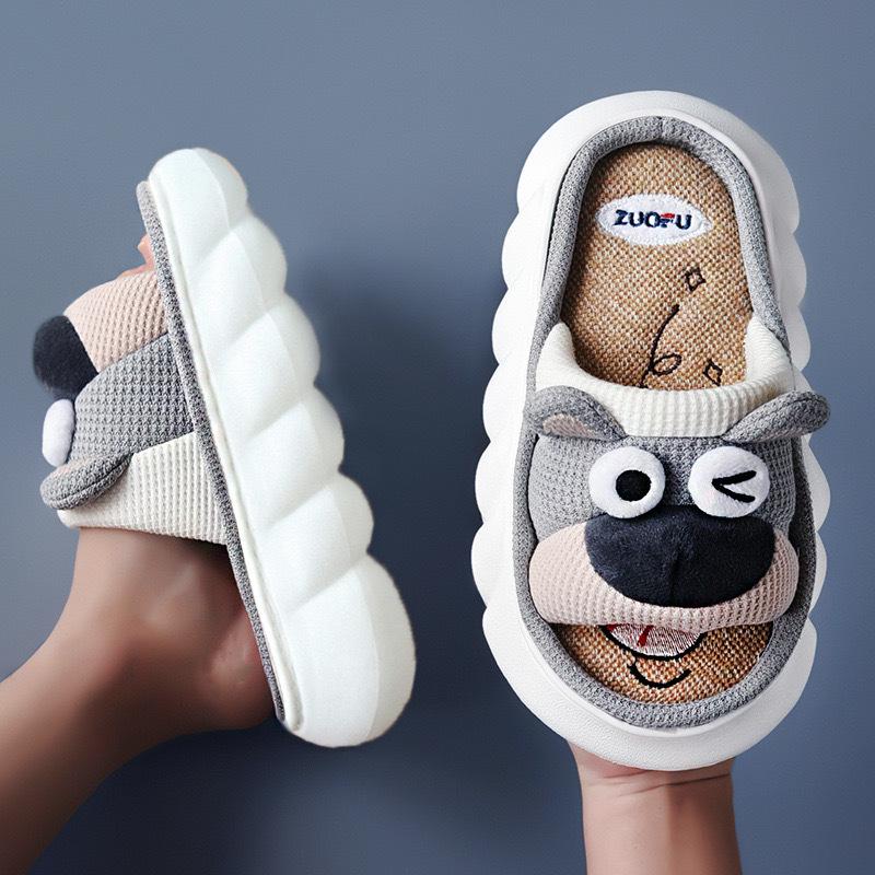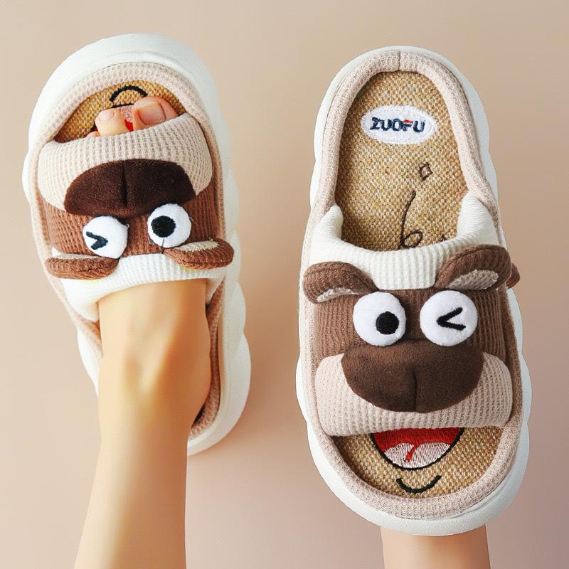 Pantuflas de lino transfronterizas para las cuatro estaciones, año de la serpiente, primavera y otoño, para interiores, lindas zapatillas de algodón antideslizantes de suela gruesa con dibujos animados para el hogar y el exterior para mujer