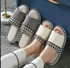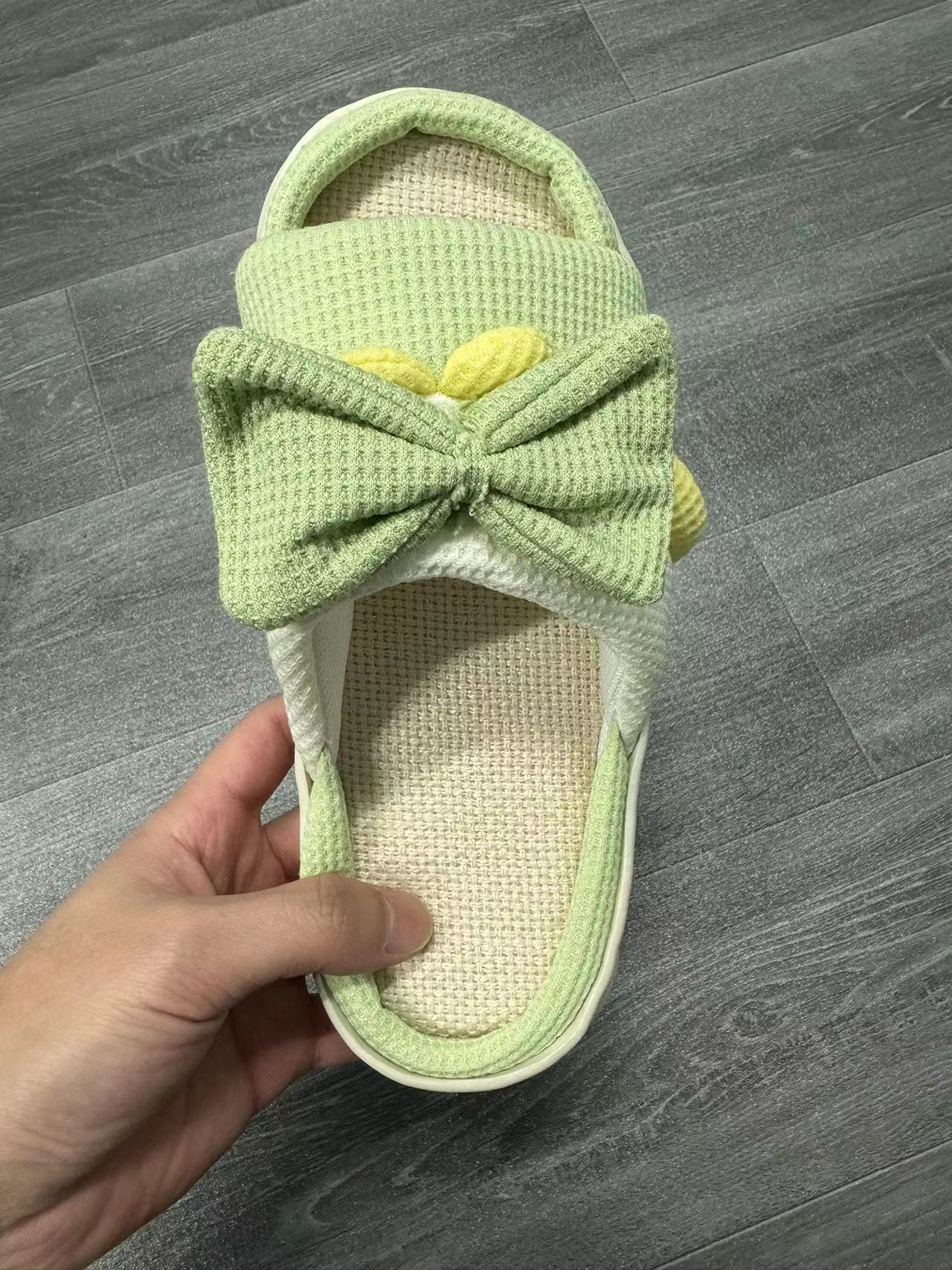 Zapatillas de lino para mujer, estilo princesa, con lazo, suela gruesa de primavera y verano, antideslizantes para interiores, zapatillas transfronterizas para las cuatro estaciones, venta al por mayor