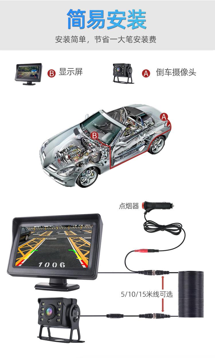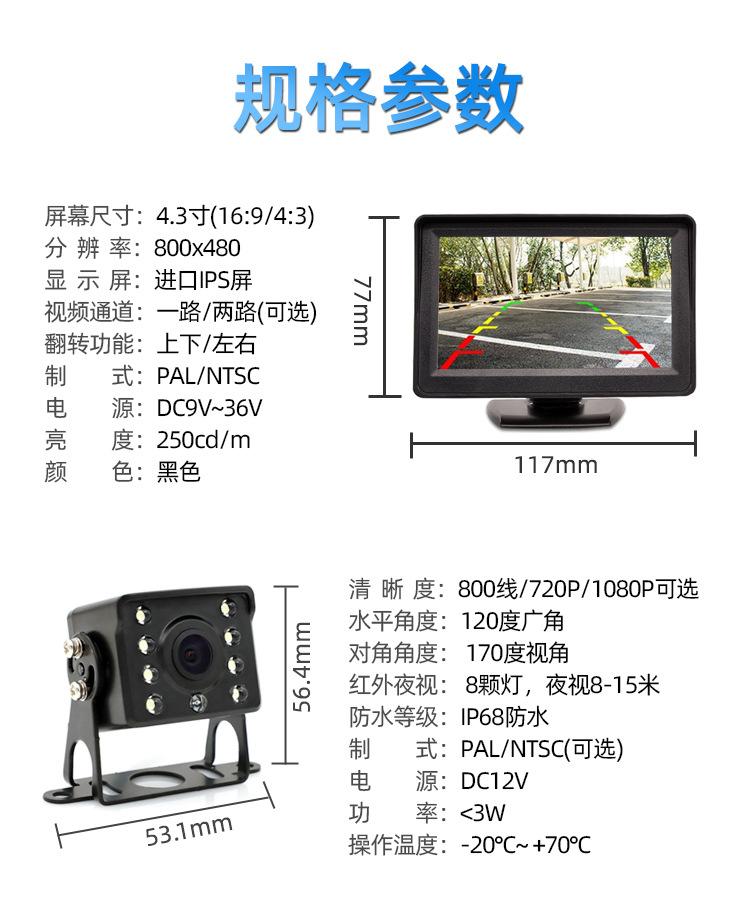 120 ° car display 4.3 inch reversing image car LCD screen 5 inch reversing display reversing image suit truck ...