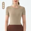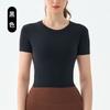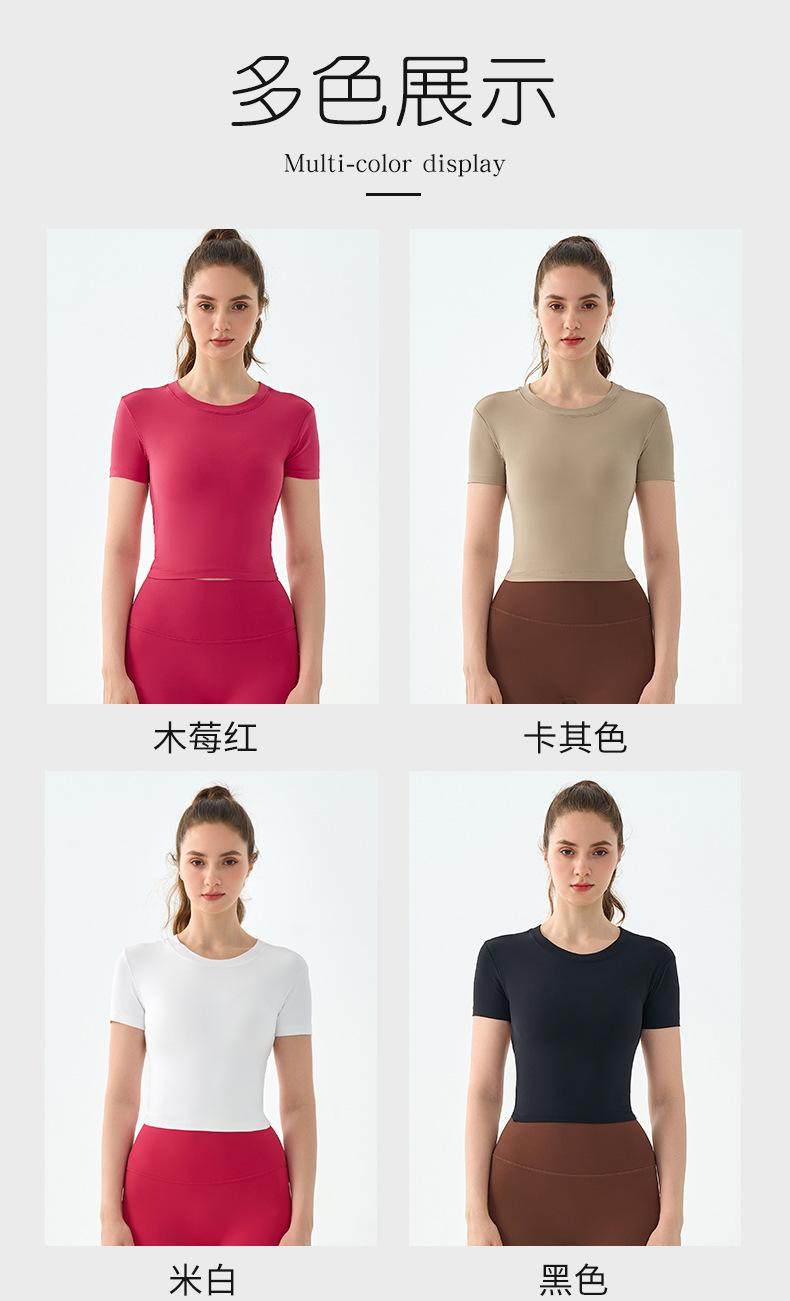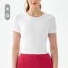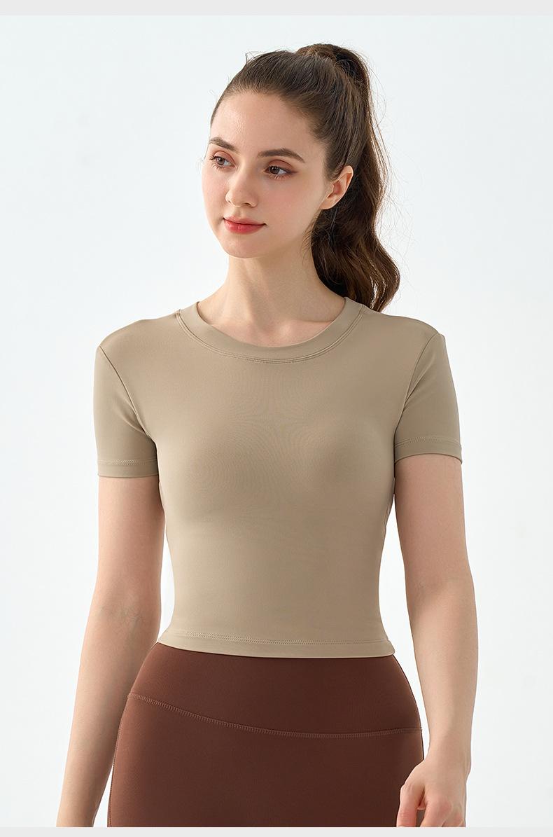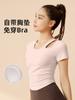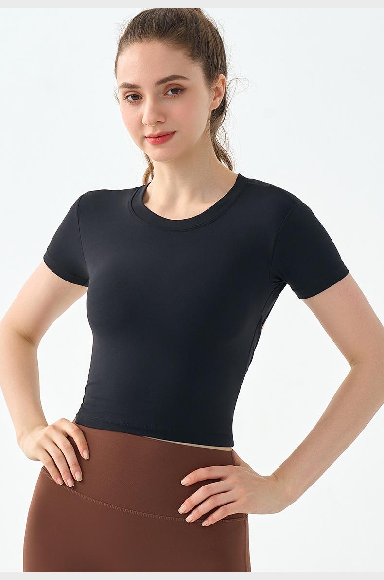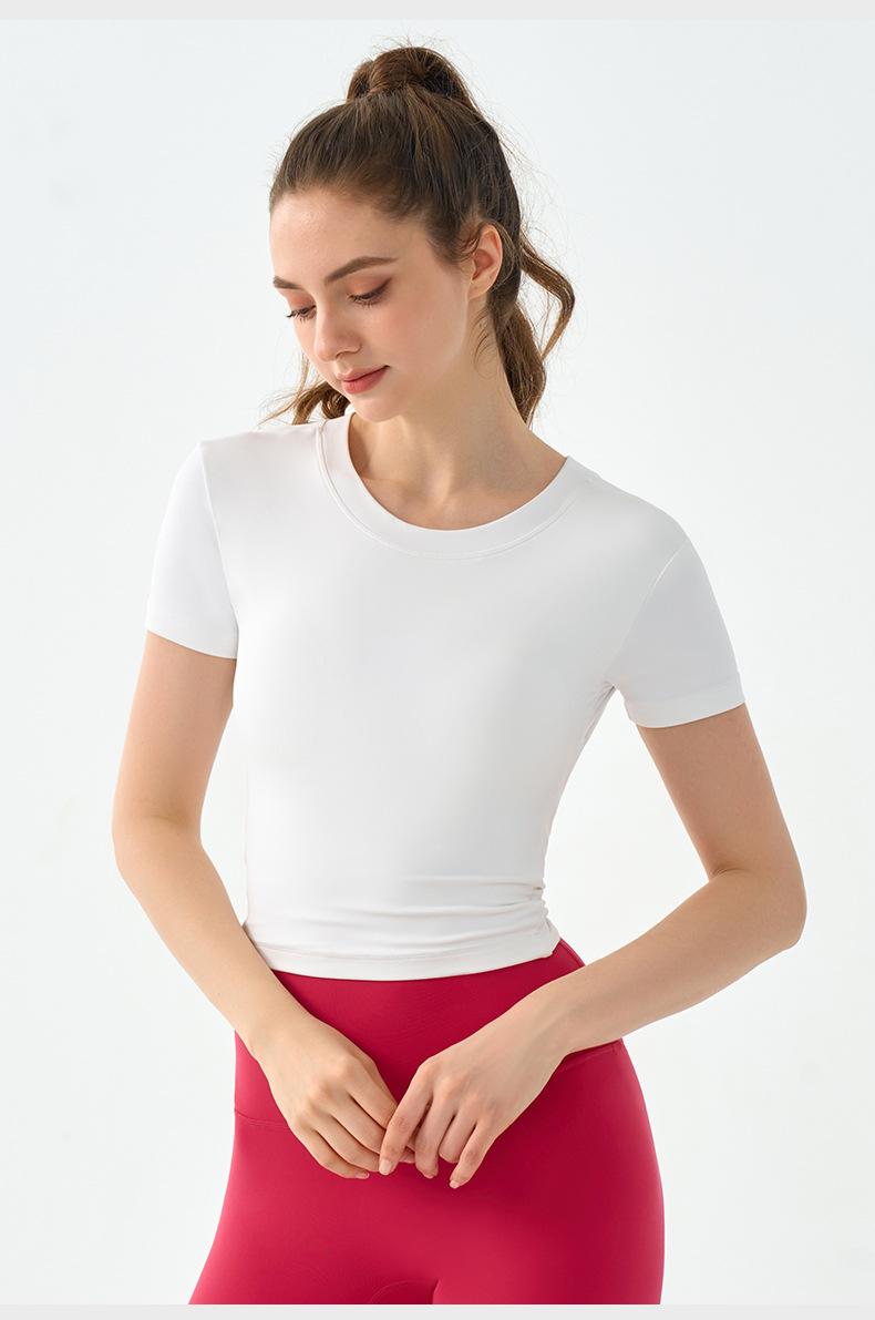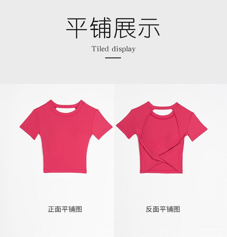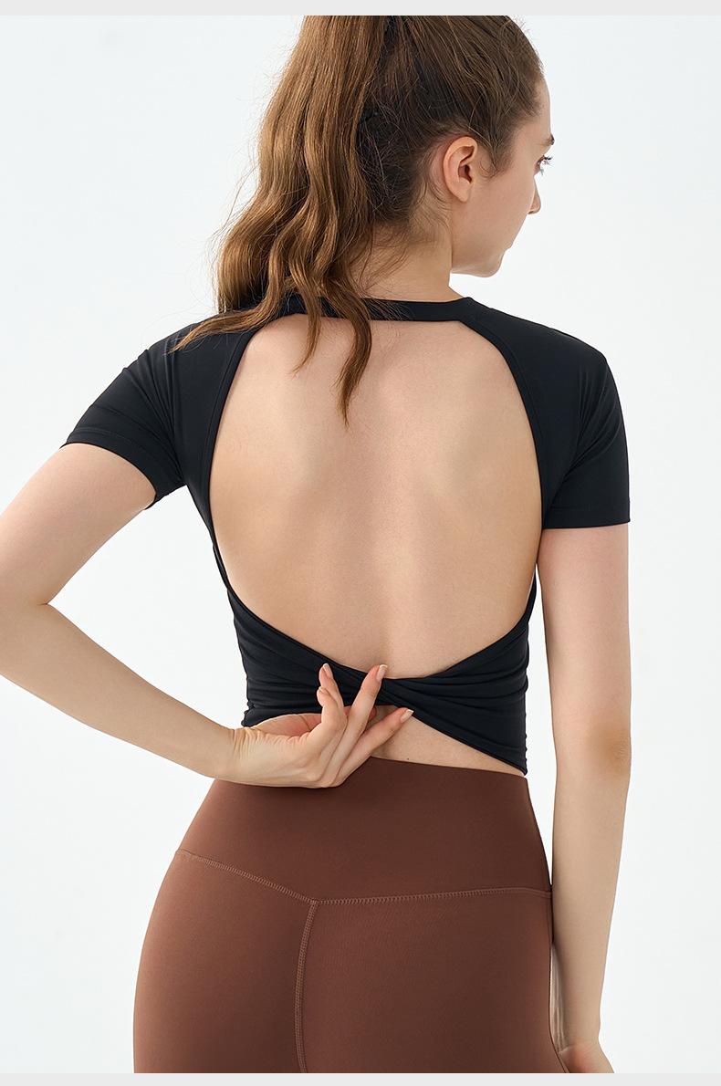 Tops de Fitness sin Espalda Europeos y Americanos para Mujer, Estilo Corto con Almohadillas en el Pecho, Giro Sexy, Espalda Hermosa, Corte Ajustado, Cuello Redondo, Mangas Cortas de Yoga
