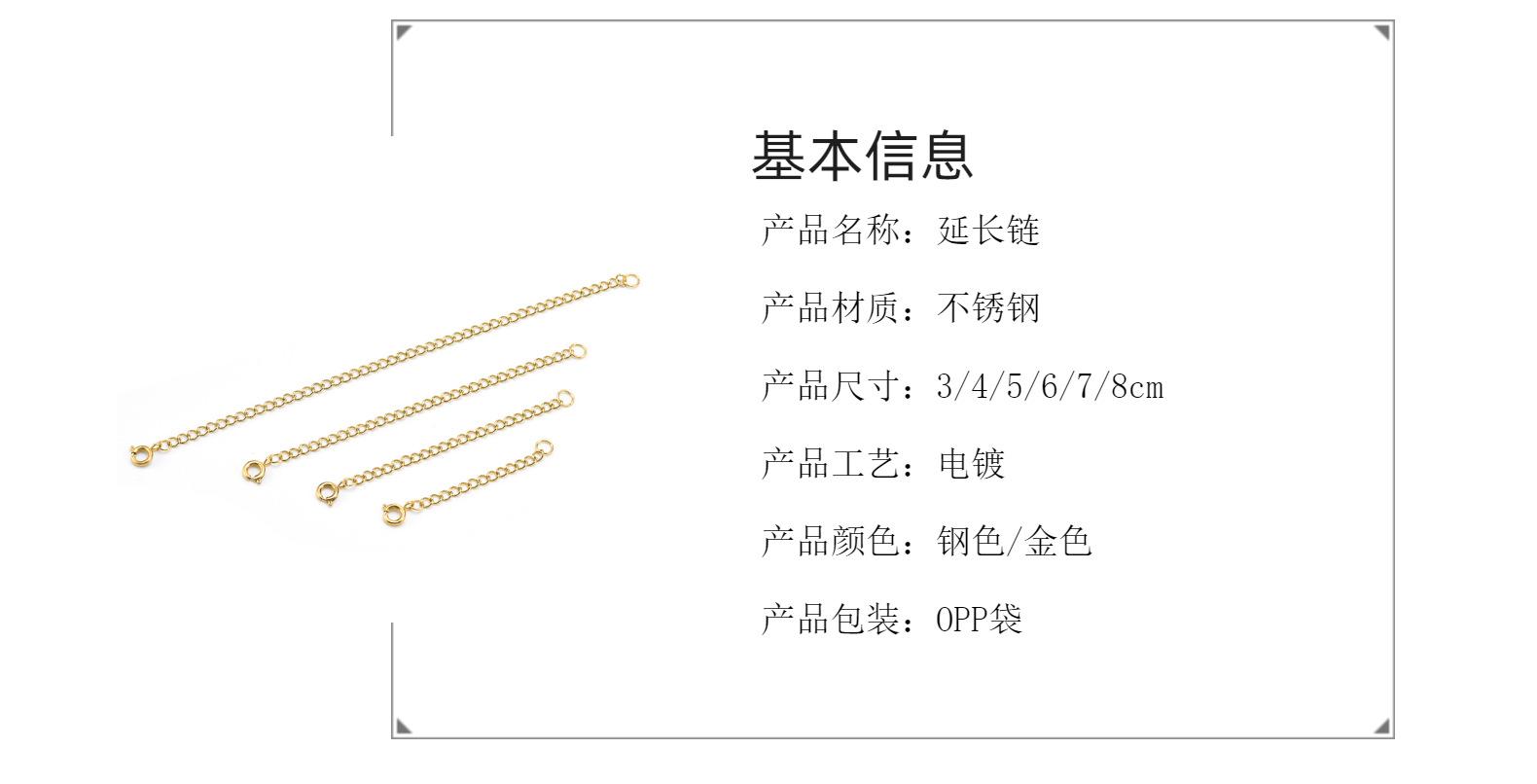 Collar de pulsera de acero inoxidable con cadena de extensión alargada chapada en oro de 18 quilates, cadena ajustable, conexión de cadena de clavícula, cadena larga femenina