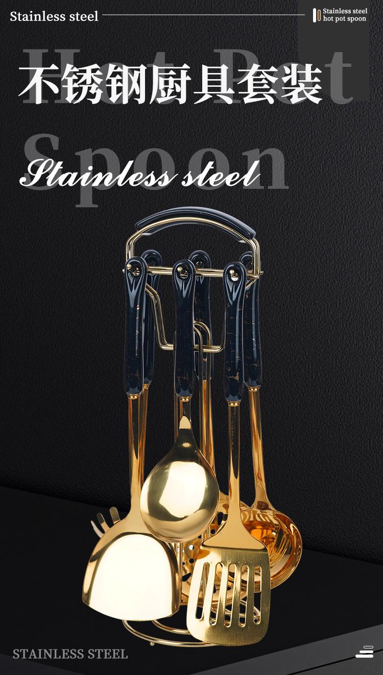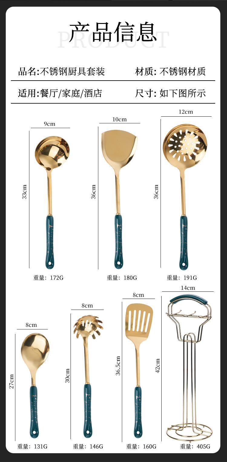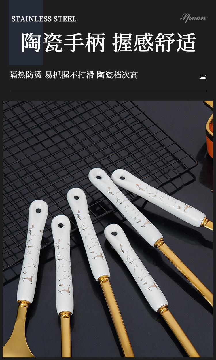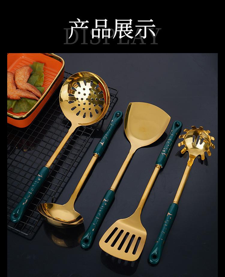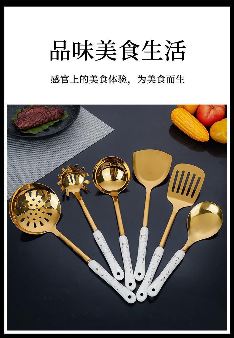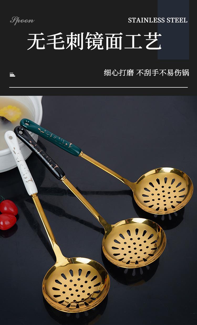 Cuchara para Cocinar de Acero Inoxidable Espátula Colador Mango de Cerámica Cuchara para Cocinar Utensilios de Cocina para el Hogar Espátula Resistente a Altas Temperaturas Juego