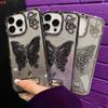 Soporte Mariposa Adecuado para Carcasa de Teléfono Móvil Apple 17 Borde Diamantado Galvanizado Iphone14Promax Cubierta Protectora de Silicona Transparente