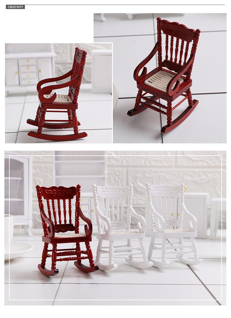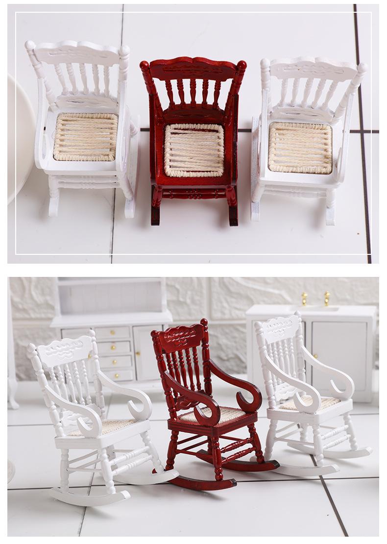 1:12 casa de muñecas casa de muñecas mini modelo de muebles comida juego bolsillo madera tejida mecedora manualidades