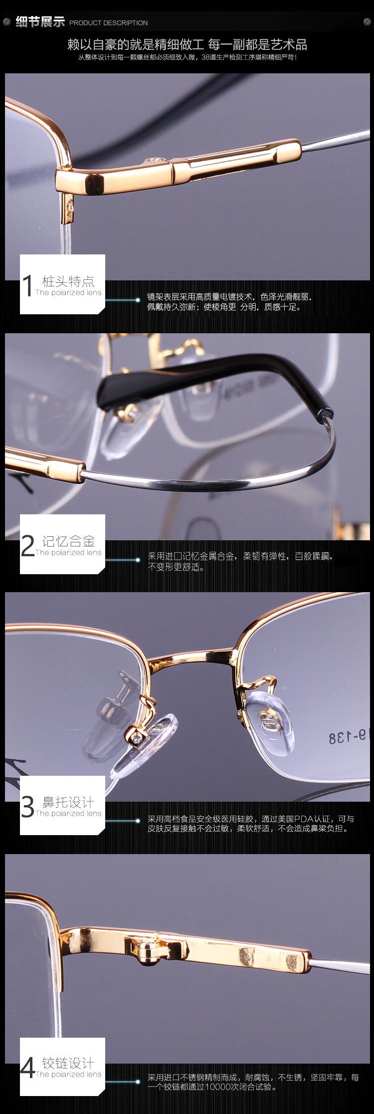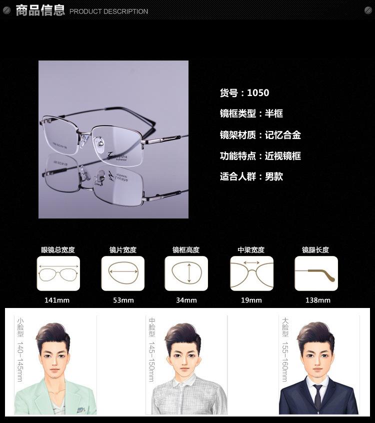 Nuevo Armazón de Metal de Medio Aro de Titanio con Memoria Transfronterizo 1050 Armazón Óptico para Hombre Armazón para Gafas de Miopía Venta al por Mayor