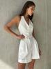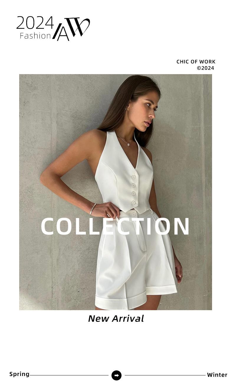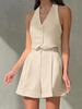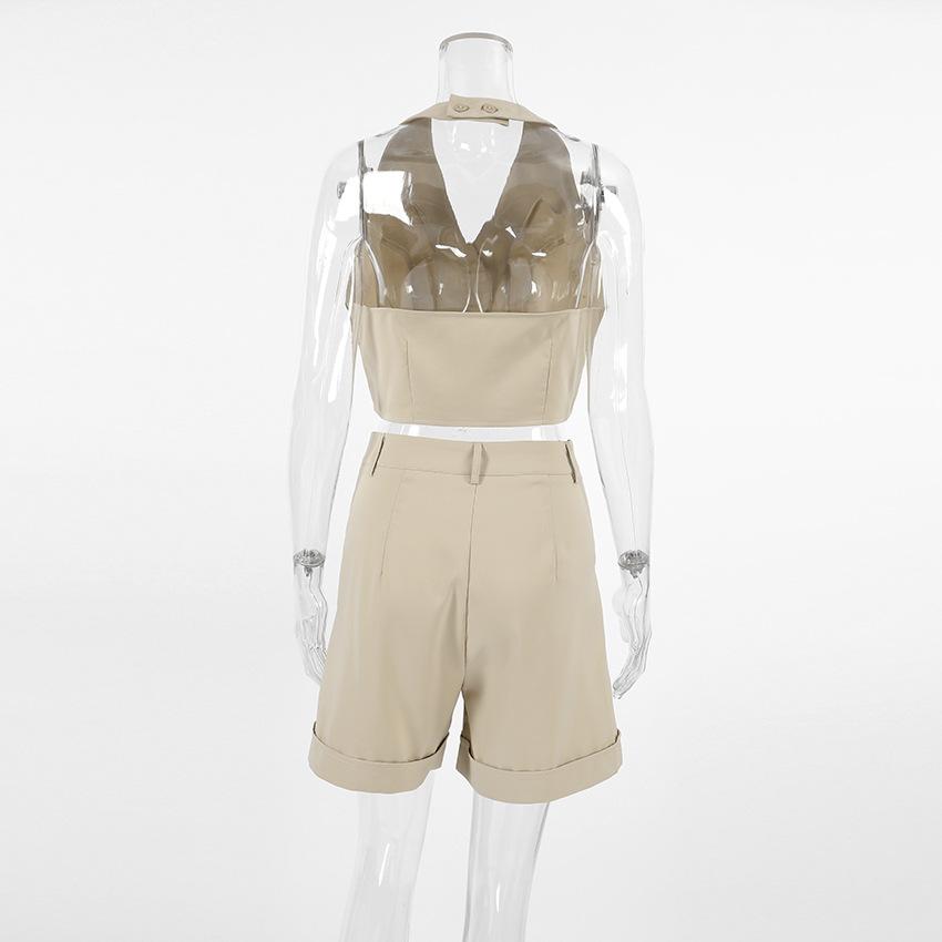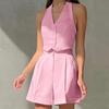 Conjunto de pantalones cortos con escote en V sin mangas de estilo viajero de primavera y verano 2024, conjunto de dos piezas al por mayor transfronterizo de moda europea y americana