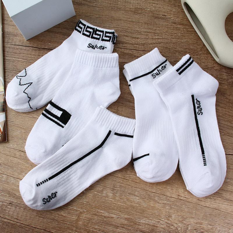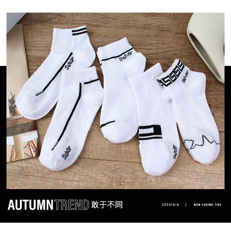 Calcetines Zhuji Calcetines Cortos Versátiles para Hombre Transpirables Calcetines de Barco Estilo Pareja Calcetines de Media Caña Calcetines Cortos de Color Sólido Blanco y Negro Calcetines Deportivos