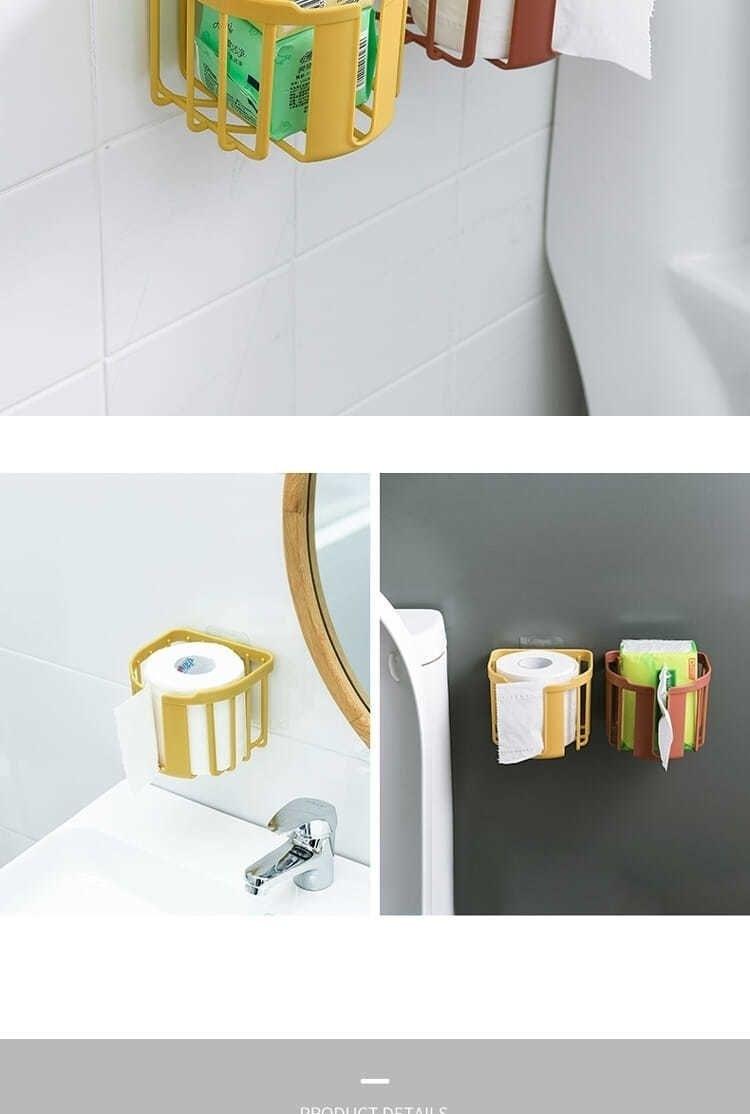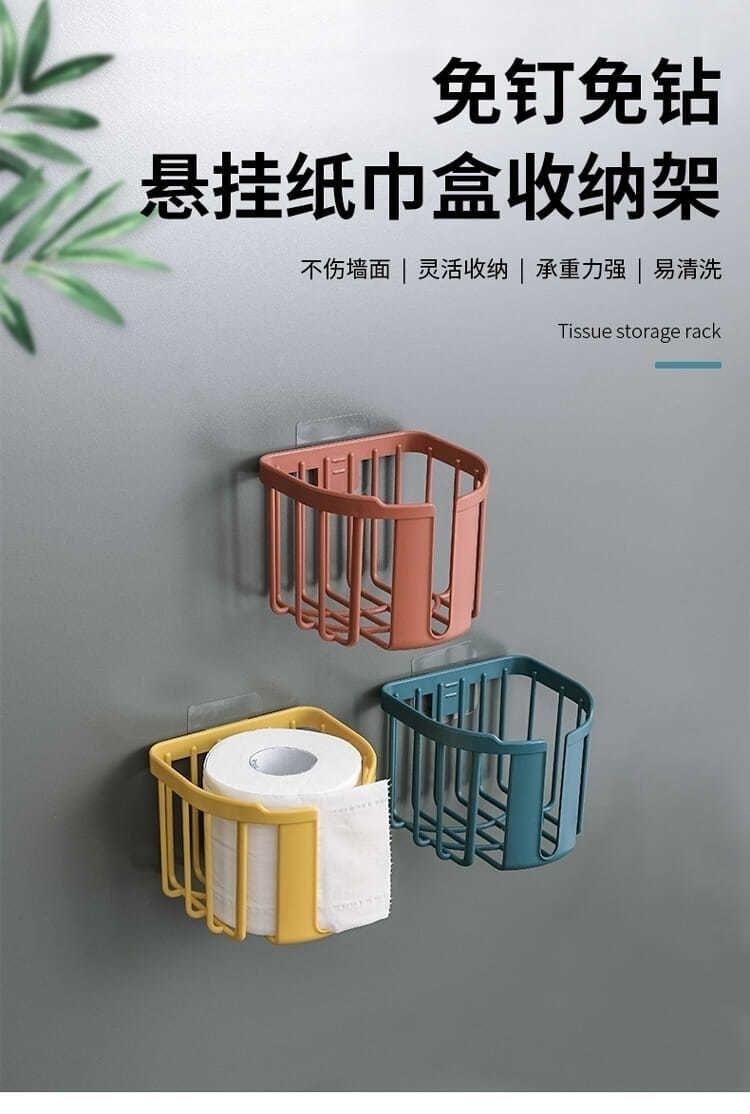 Caja de papel higiénico sin perforaciones, cesta para papel higiénico, estante para papel higiénico de pared, caja para rollos de papel
