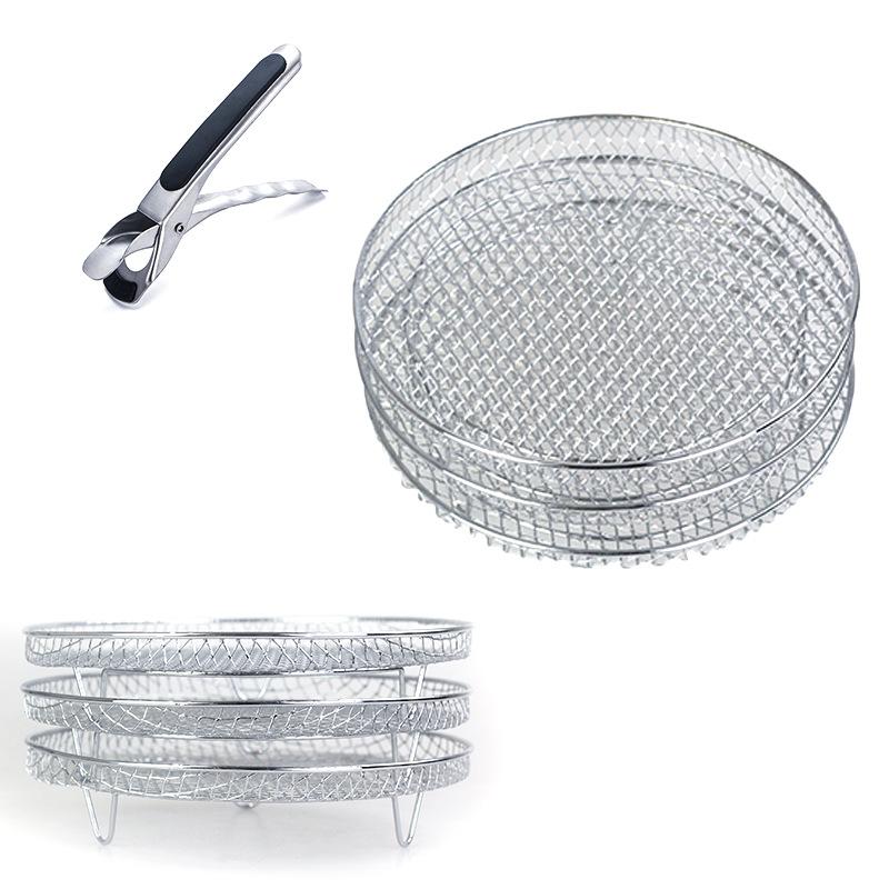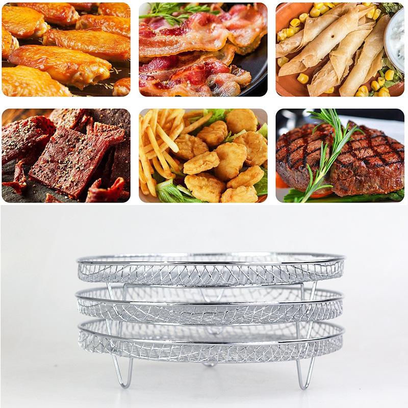 Freidora de aire rejilla redonda apilable de tres capas para deshidratación acero inoxidable accesorios para freidora de aire para Keshuai Mizi