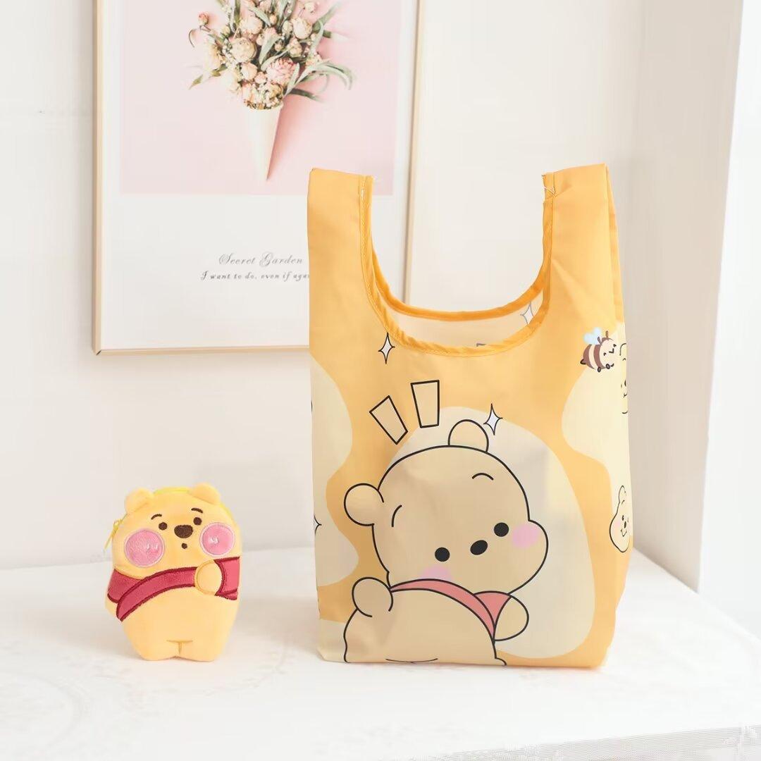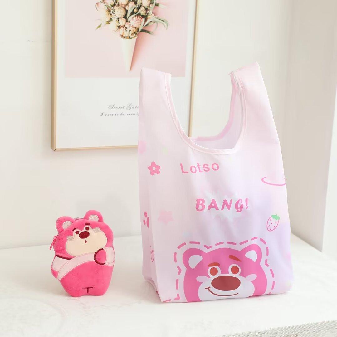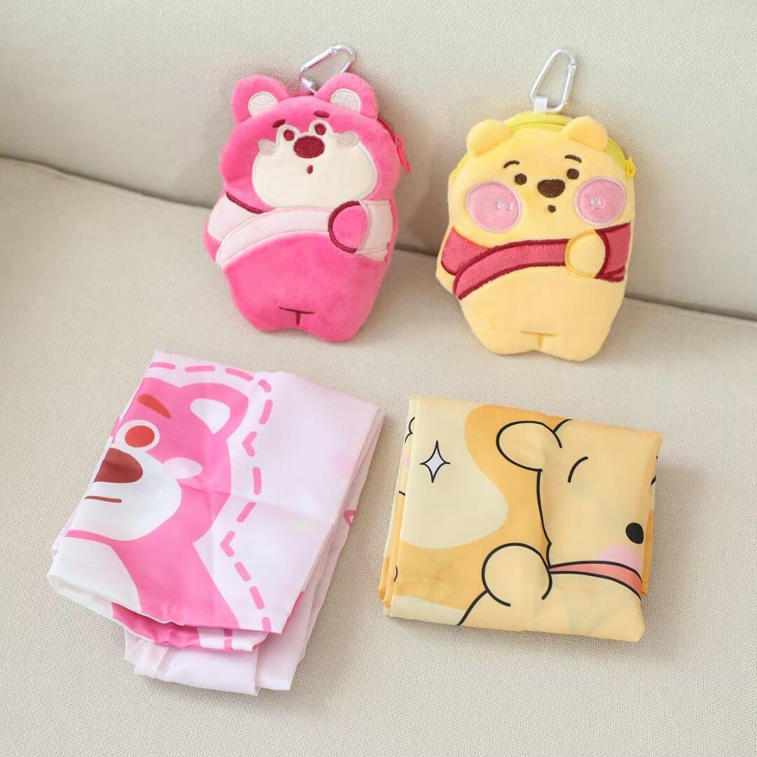 Bolsa de compras plegable con dibujos animados, portátil, de gran capacidad, ecológica, para guardar cosas, informal, para hombro, monedero de peluche
