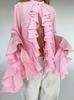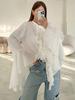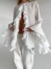 Diseño de Gasa Blanca Cuello Redondo Manga Campana con Volantes Camisa de Mujer 2025 Moda Nueva de Primavera y Verano Europea y Americana Mujer
