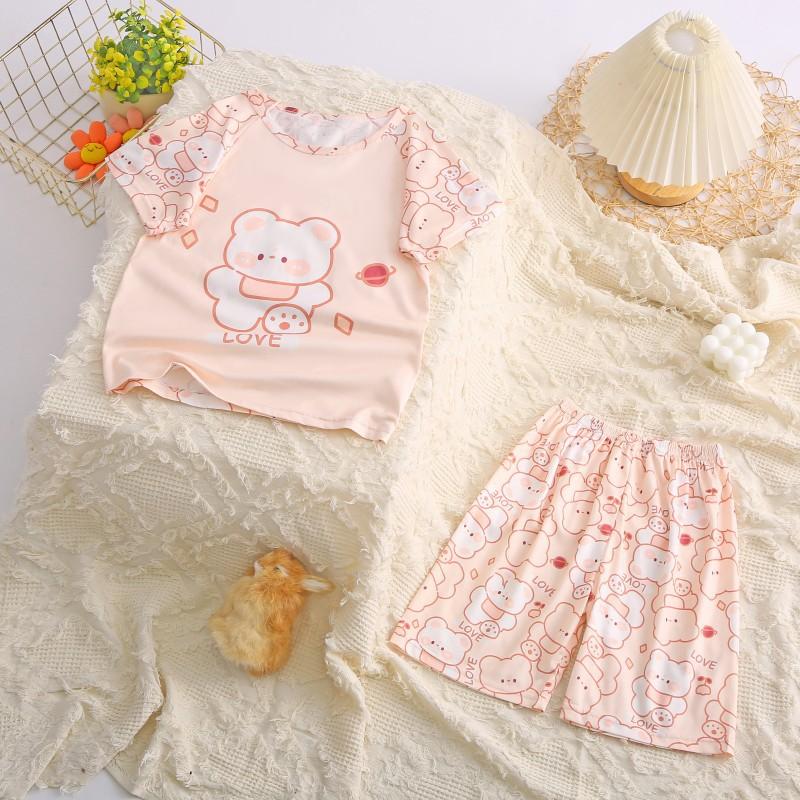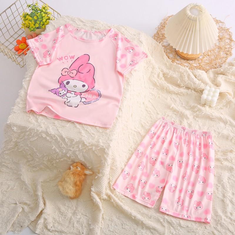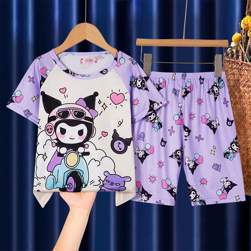Pijamas infantiles de verano estilo princesa de dibujos animados de manga corta finos para niñas bebés medianas y grandes niños aire acondicionado conjunto de ropa para el hogar