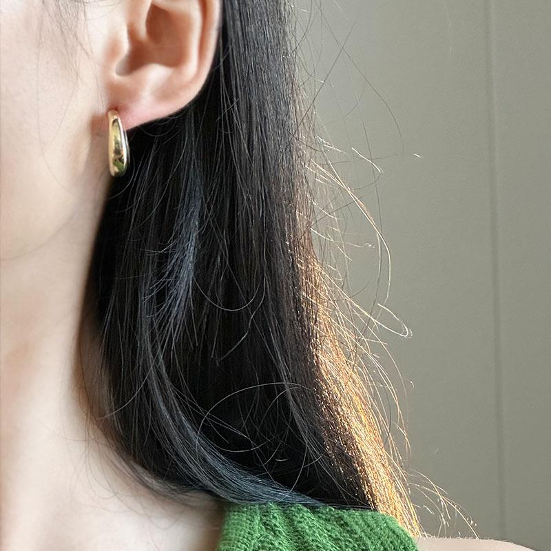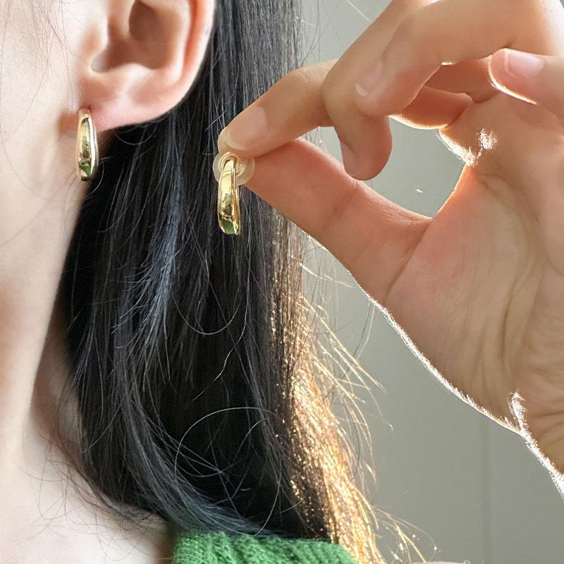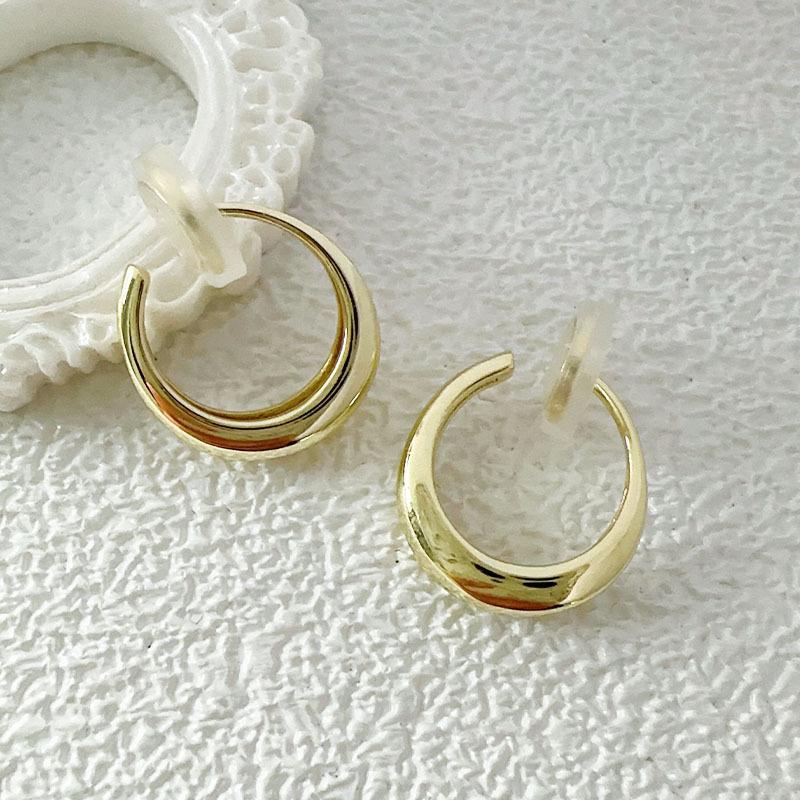 Pendientes de metal simples y elegantes para mujer, electrochapados en oro real, ovalados, de luna integrada, de clip para la oreja tipo espiral de mosquito sin perforación