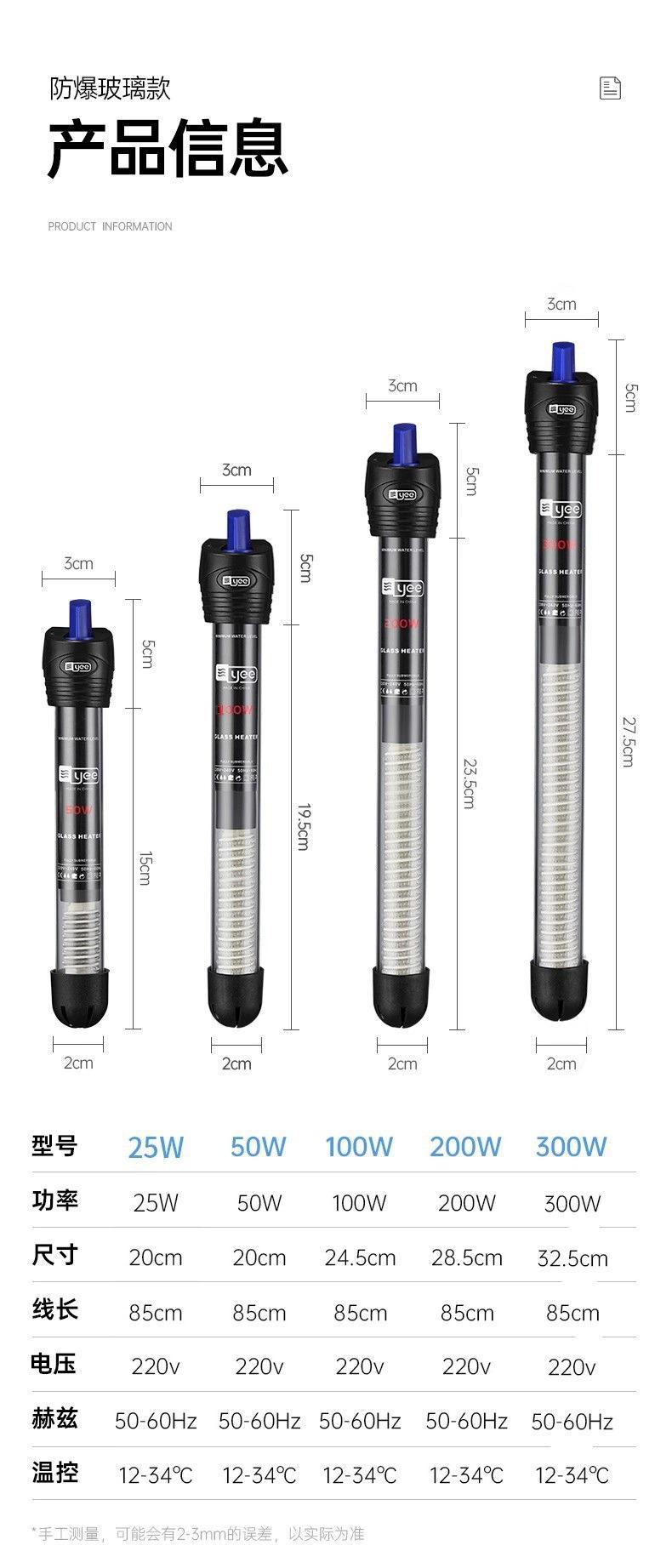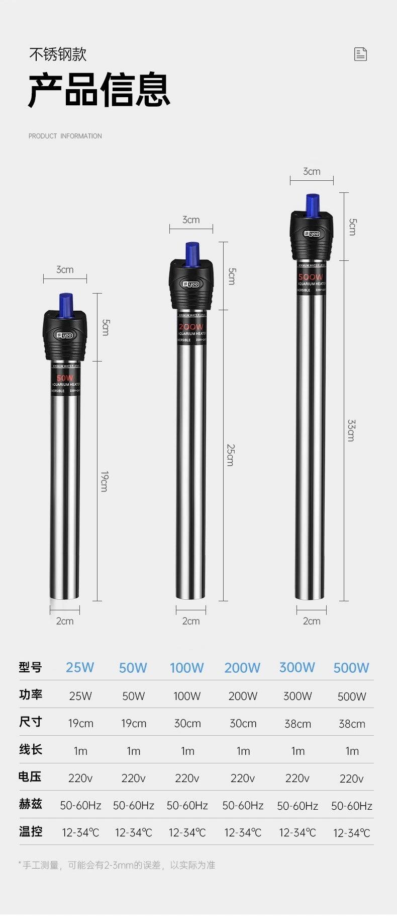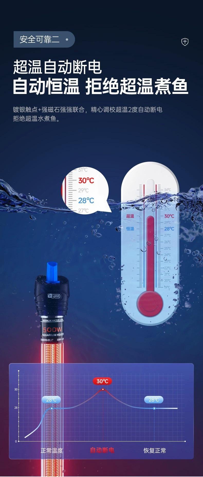 Calentador de Acuario Yee Varilla Calentadora de Acero Inoxidable a Prueba de Explosiones Temperatura Constante Automática Tanque de Tortugas Calentador de Acuario Pequeño