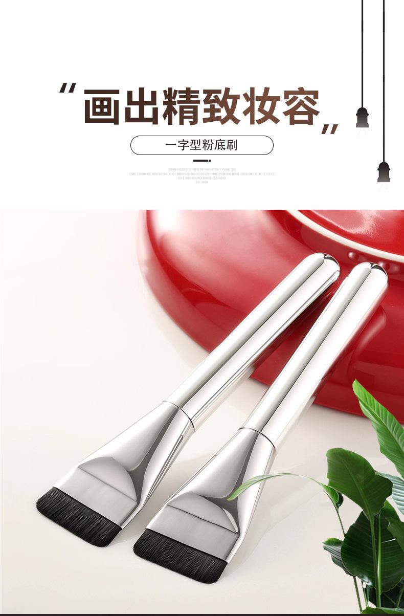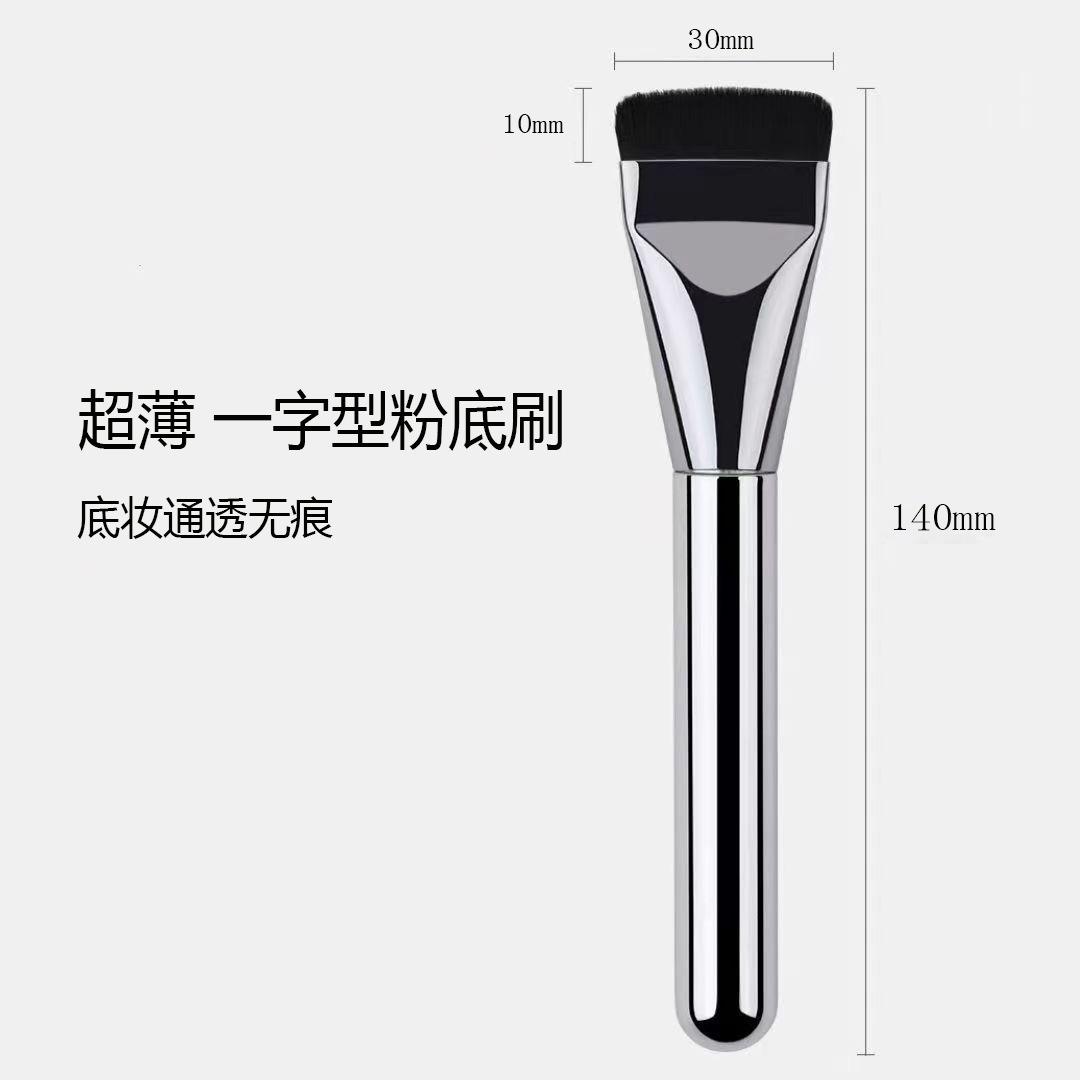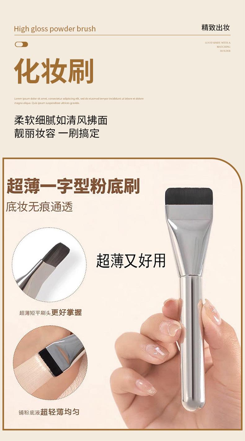 One-line brush flat silver, Golden foundation brush, One-word brushed pink flat head, Silicone powder handle p...