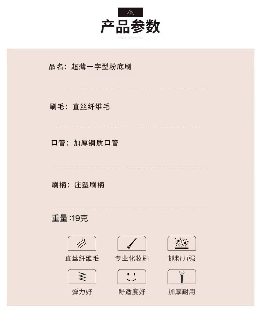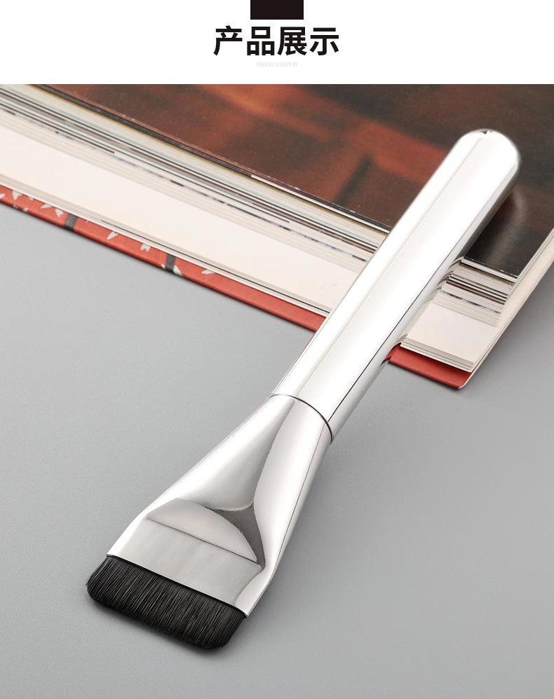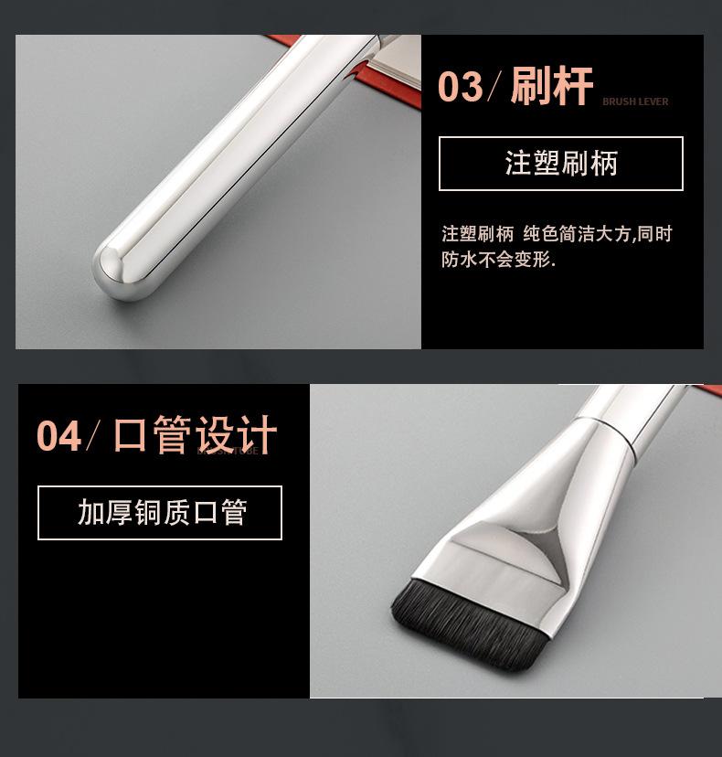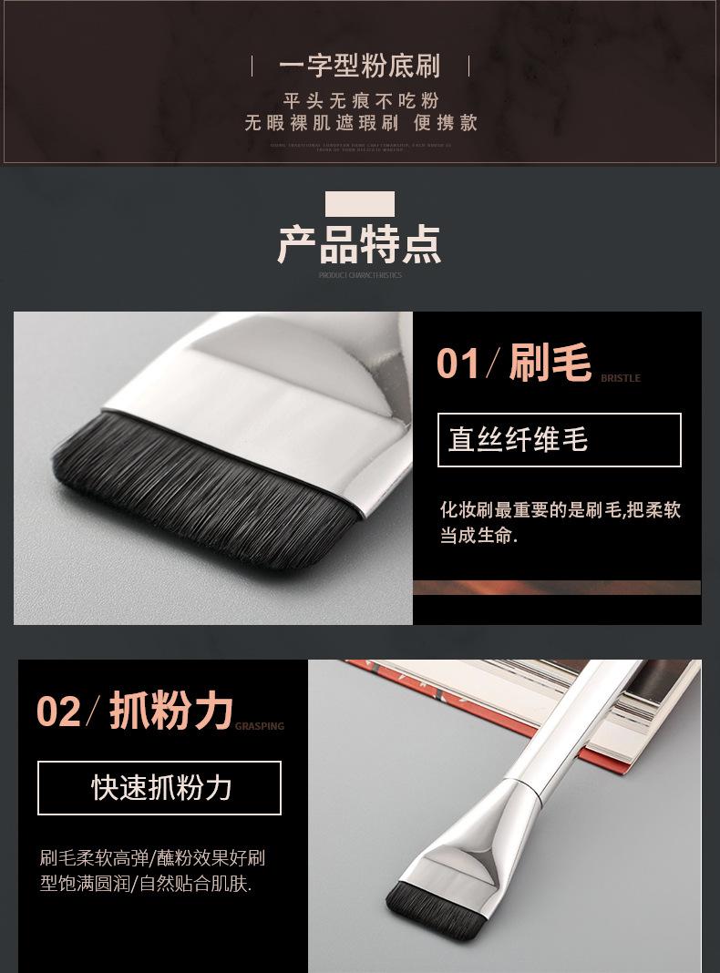 One-line brush flat silver, Golden foundation brush, One-word brushed pink flat head, Silicone powder handle p...