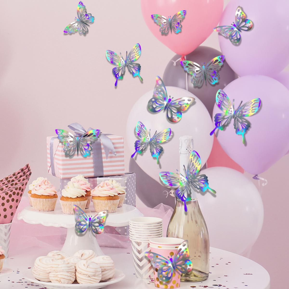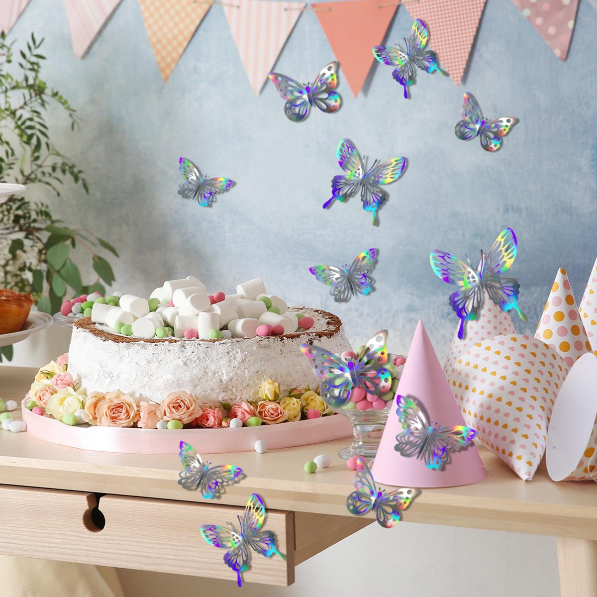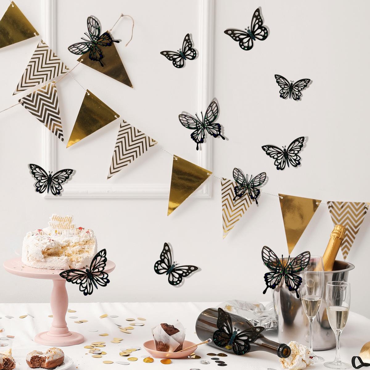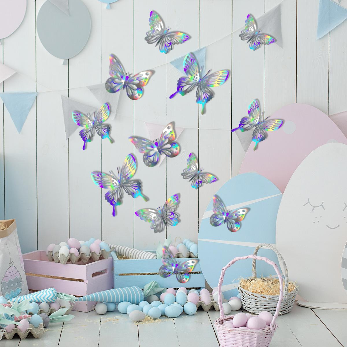 Pegatinas de pared de mariposas 3D huecas de colores, pegatinas decorativas para sala de estar, dormitorio y habitación, pegatinas de pared autoadhesivas.