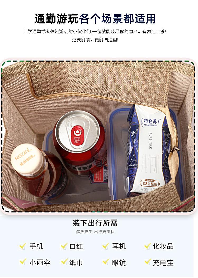 Bolso de lino para mujer, moderno, de lona, estilo coreano, estilo occidental, informal, para el almuerzo.
