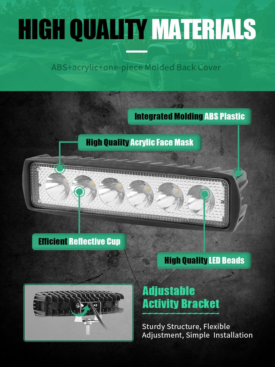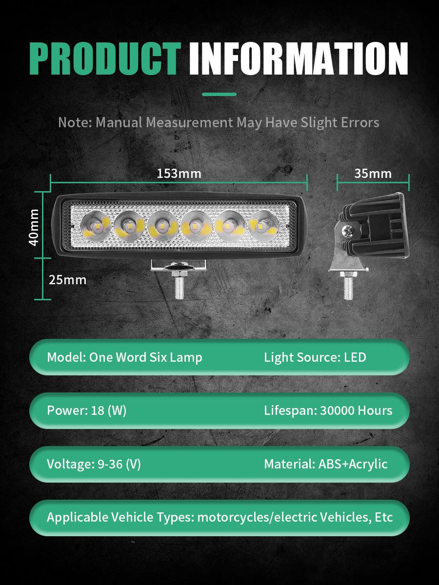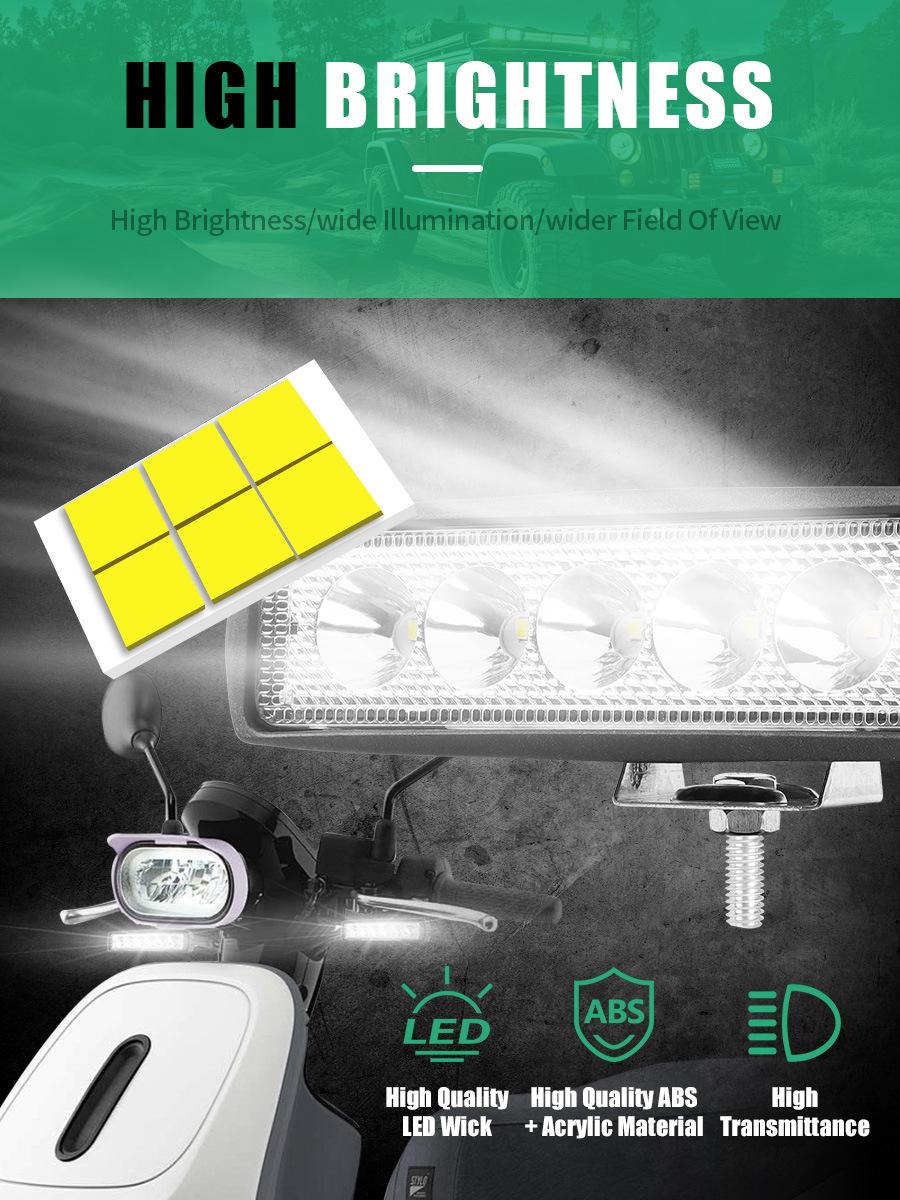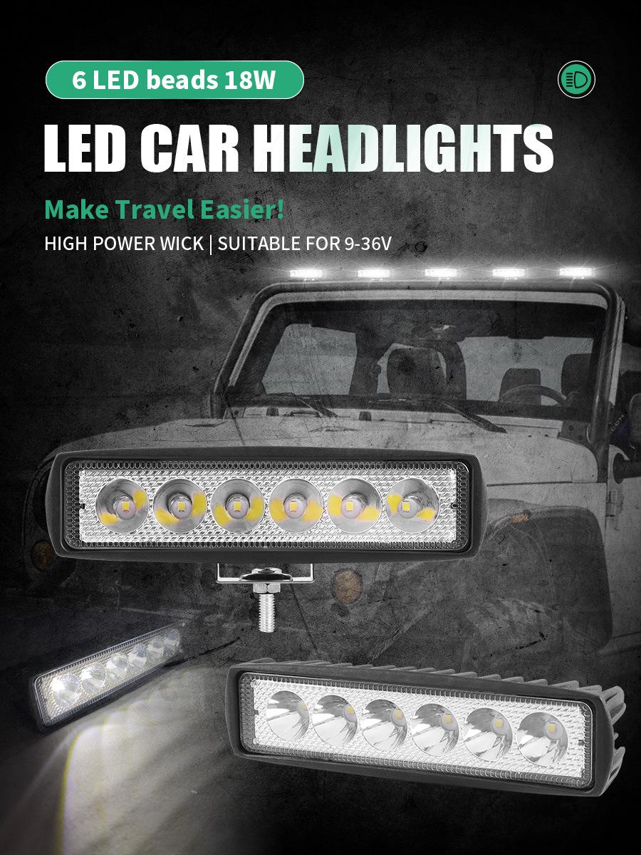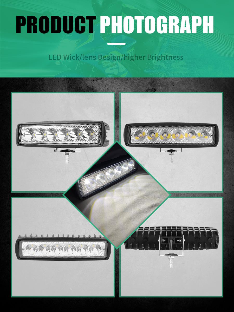 Luz de trabajo LED para automóvil de una línea, 18 W, luz modificada para motocicleta, luz de parachoques delantero para vehículo todoterreno, luz lateral para camión