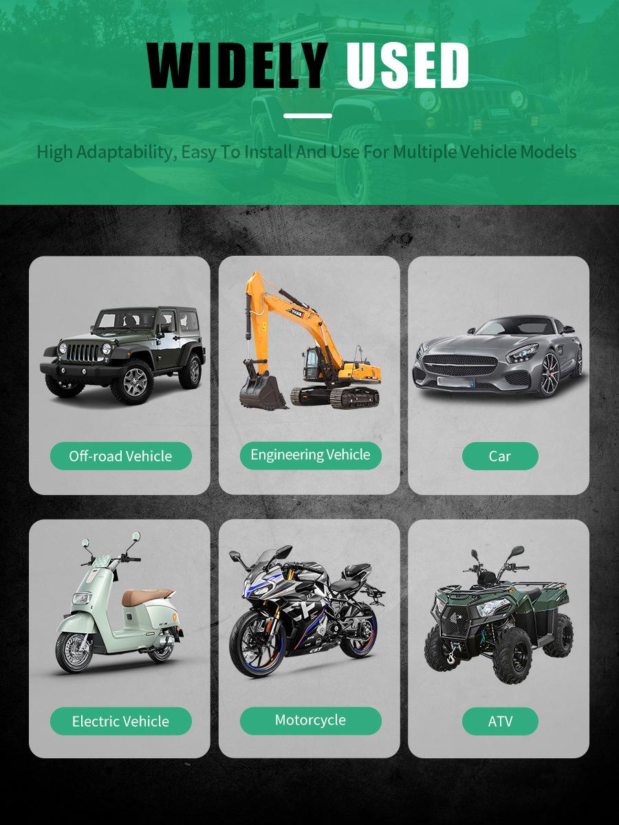 Aplicable: automóviles, motocicletas, vehículos todoterreno, camiones, carretillas elevadoras y barcos.