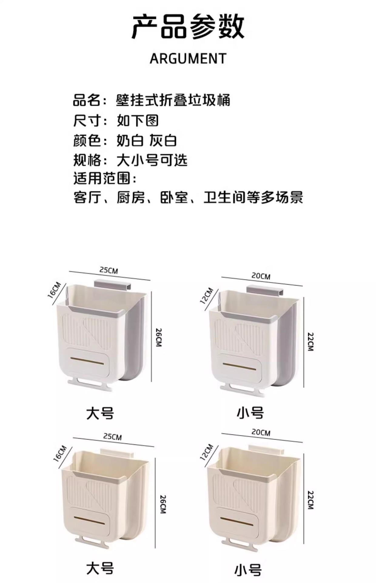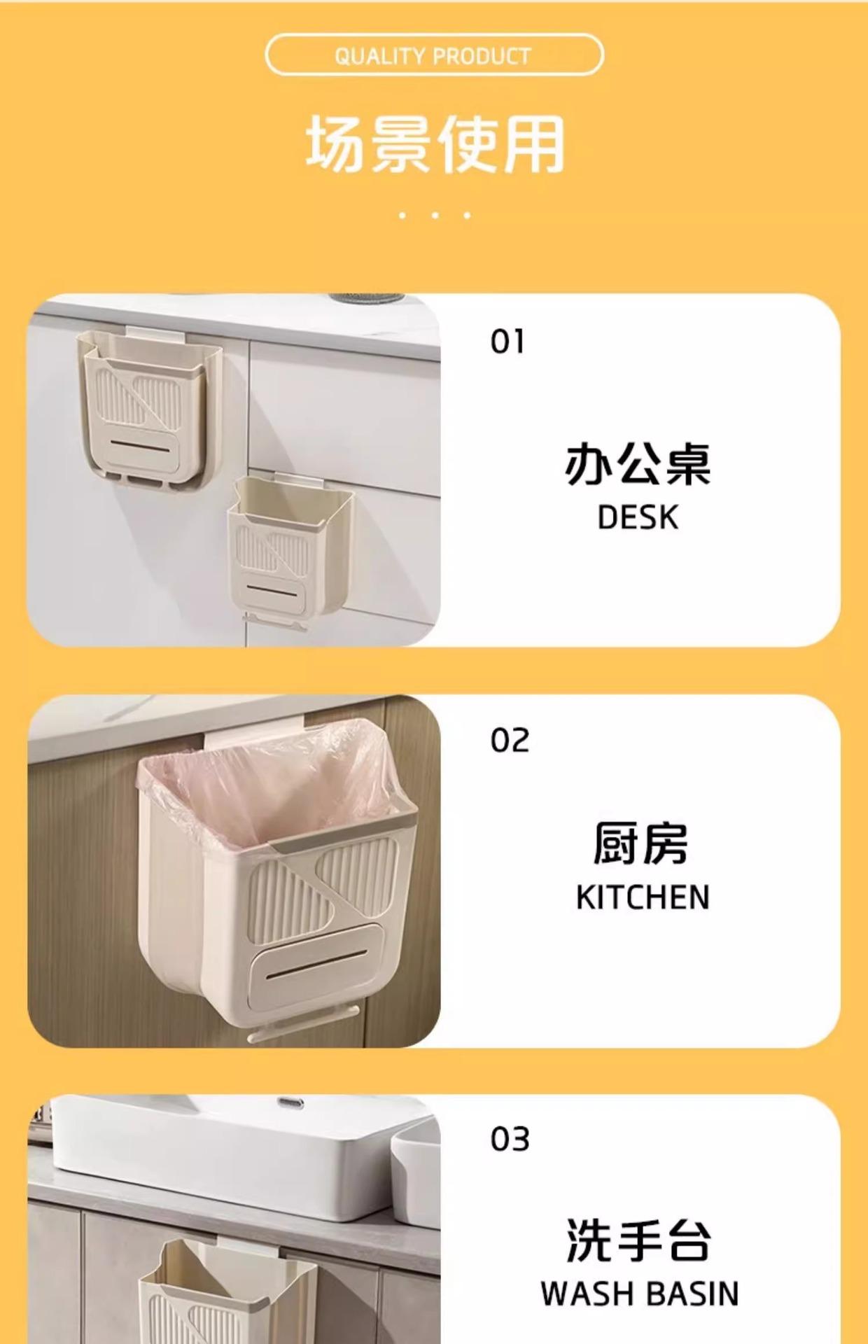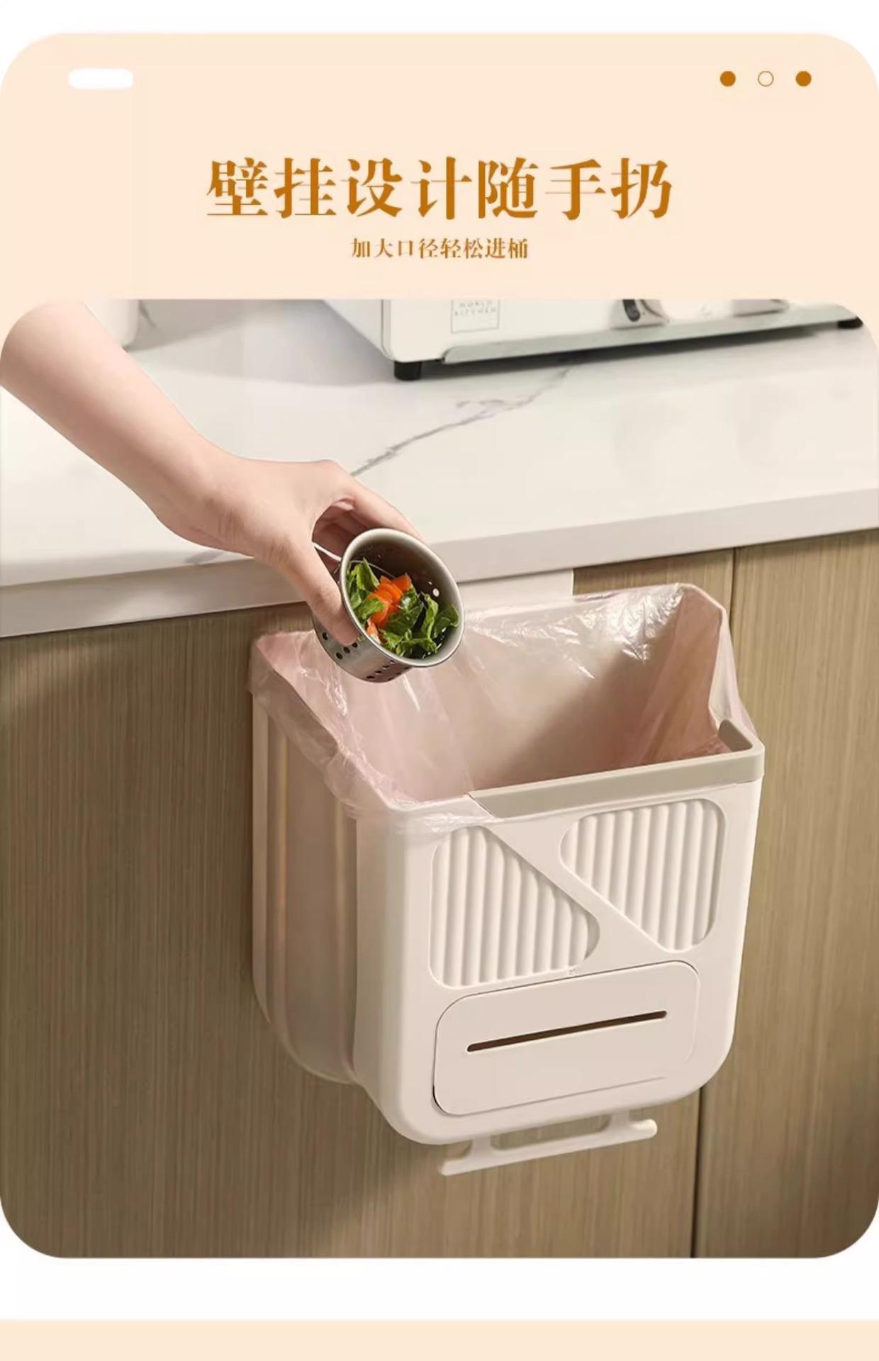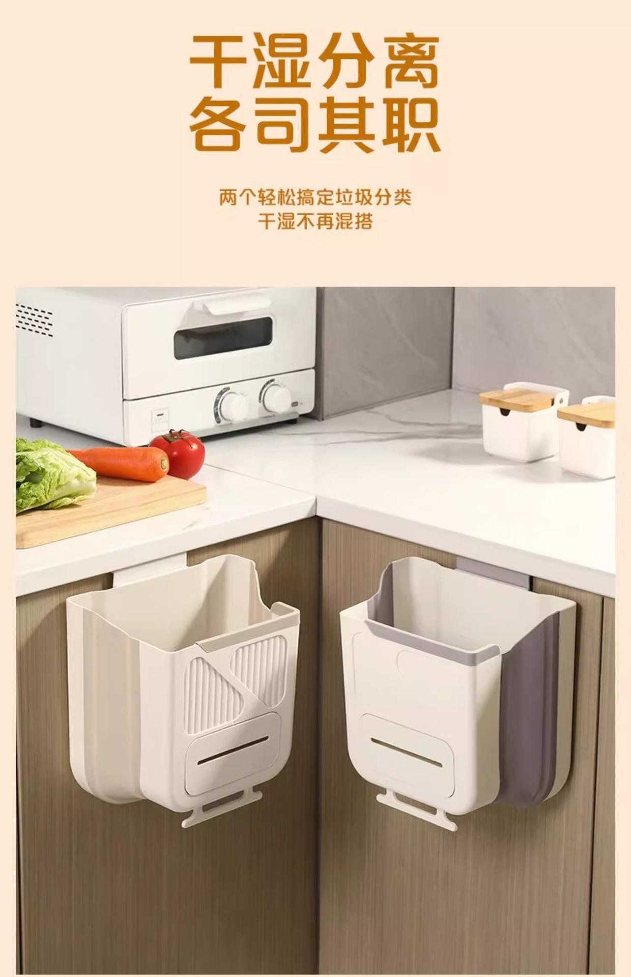 Cubo de basura plegable para el hogar, armario de cocina, colgante, de gran diámetro, multifunción