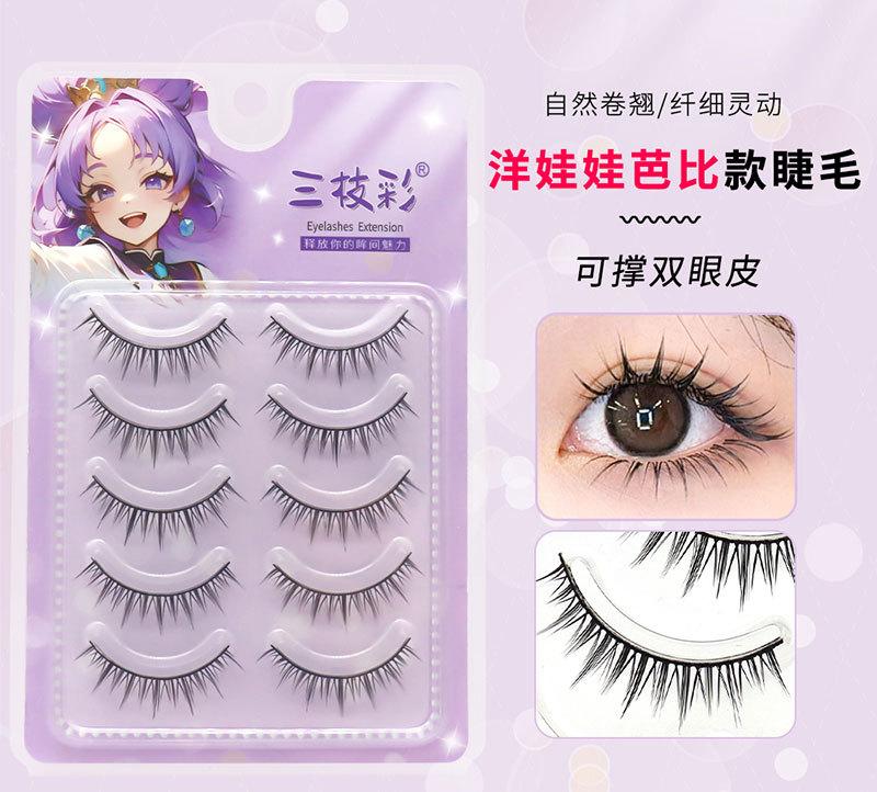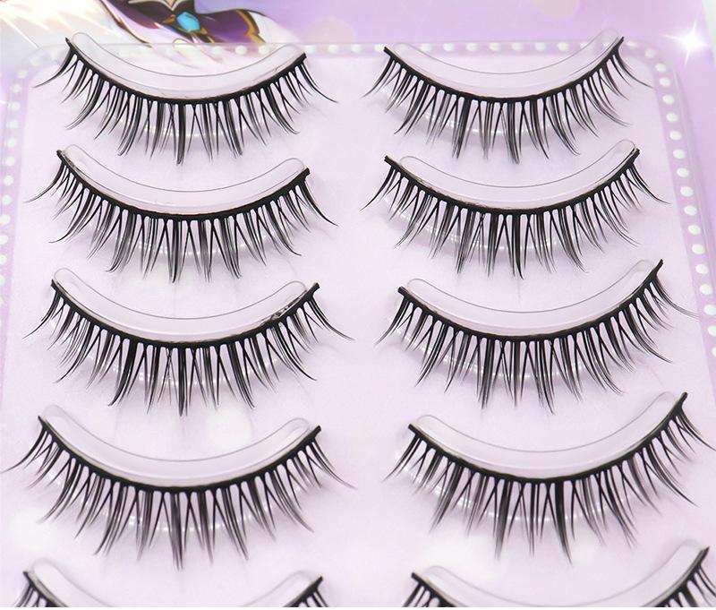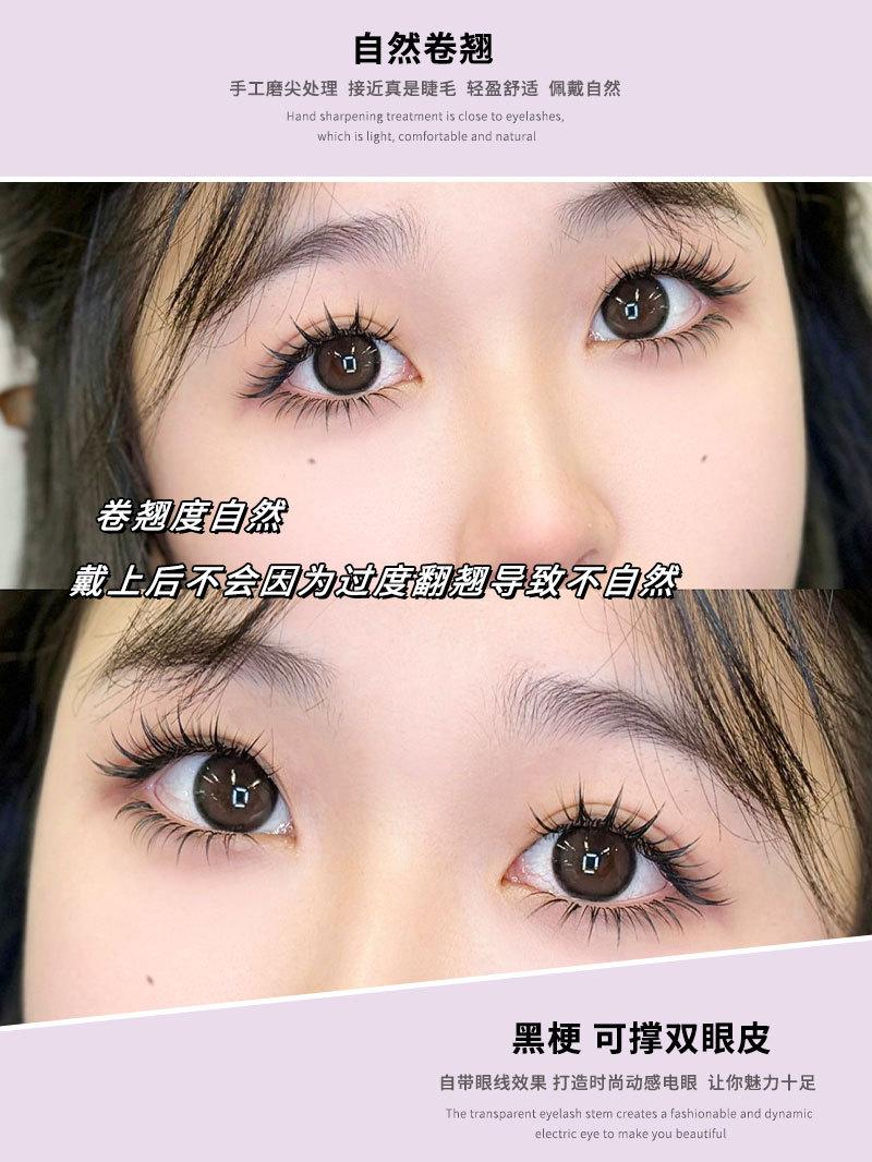 Pestañas postizas de dibujos animados exquisitos de nicho, naturales, gruesas, de una sola pieza, recomendadas por maquilladores novatos, pestañas postizas de tallo duro negro