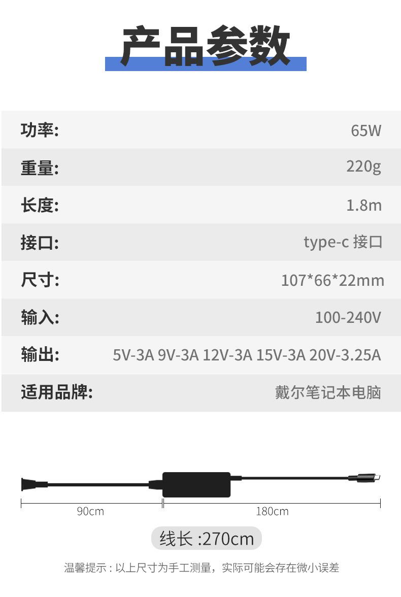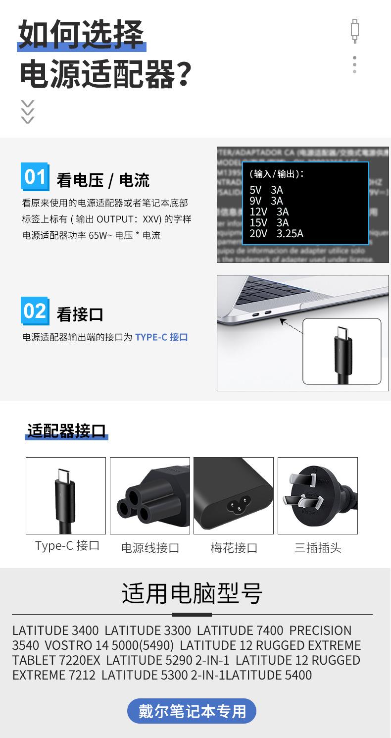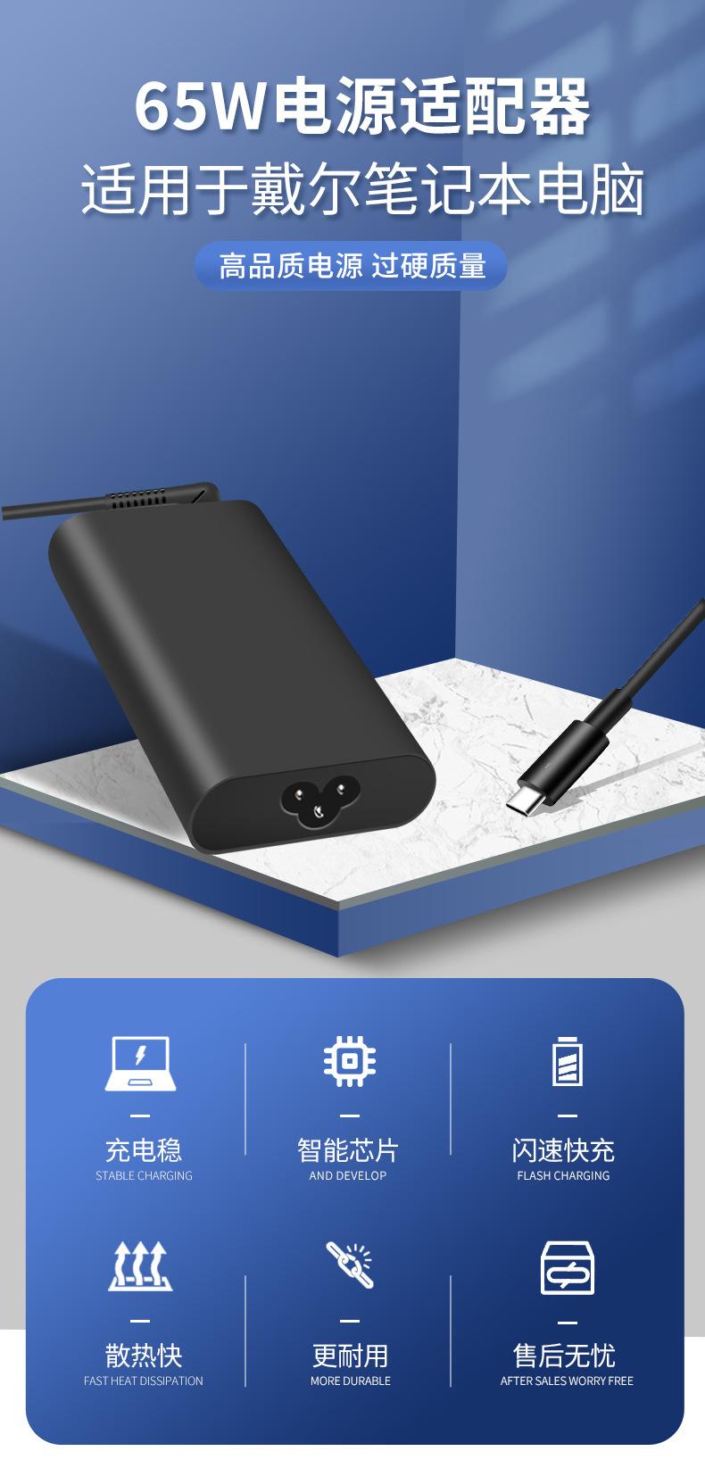 Para DELL Dell 4 generación 65W adaptador de corriente para portátil ultrafino cargador 20V3.25A PD carga rápida