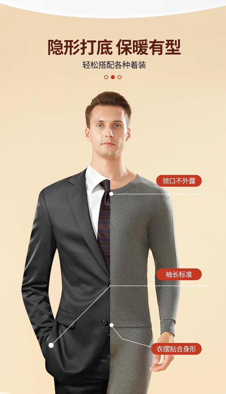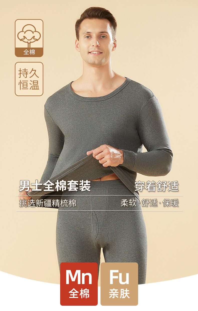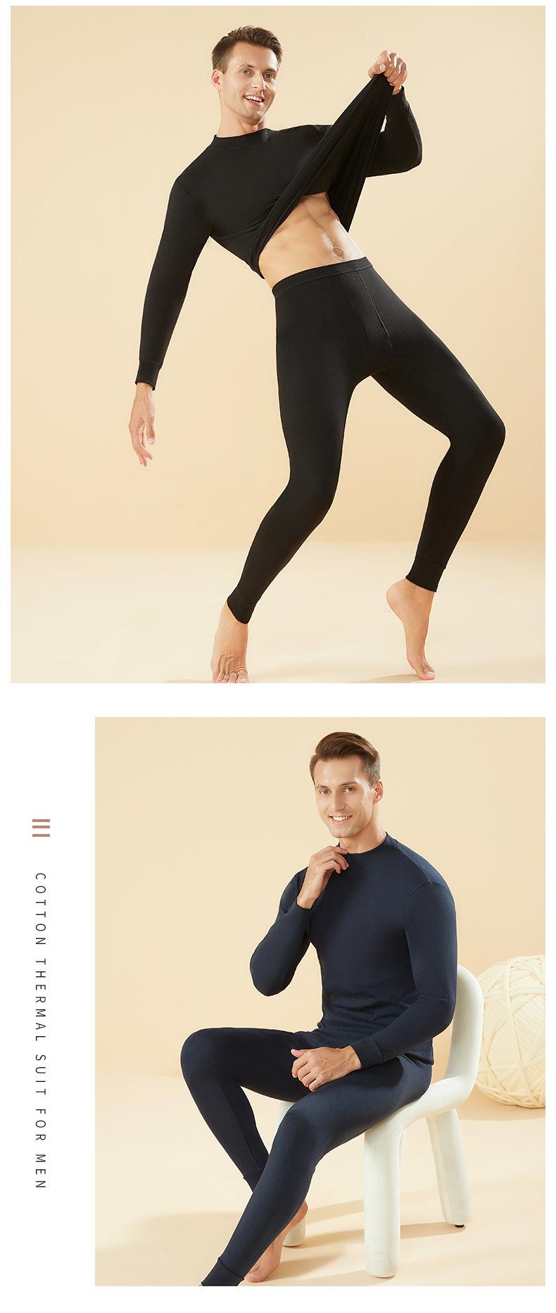 Ropa y Pantalones de Algodón Puro para Otoño Traje de Ropa Interior Térmica para Hombre Suéter de Algodón para Mediana Edad y Adultos Mayores Cuello Medio Redondo Ropa Interior Base para Hombre