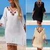 Estilo Vacacional Europeo y Americano Hecho a Mano Crochet Hombro Manga Larga Blusa de Playa Hueca Suelta Bikini Traje de Baño Blusa 876