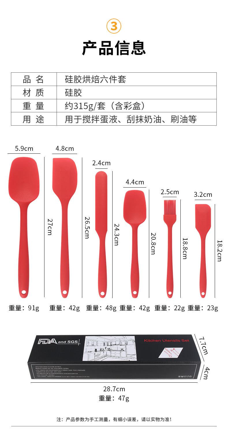 Espátula de silicona transfronteriza en stock, herramienta para hornear de 6 piezas, espátula de silicona para crema de pastel, espátula, brocha para aceite