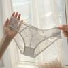 Bragas de verano finas de encaje sexy con cintura baja y encaje cruzado para chica, de algodón puro, transparentes y con realce de cadera.
