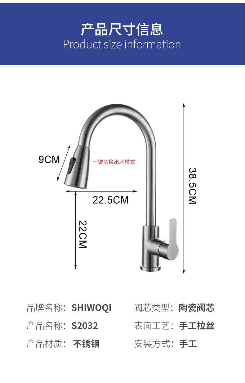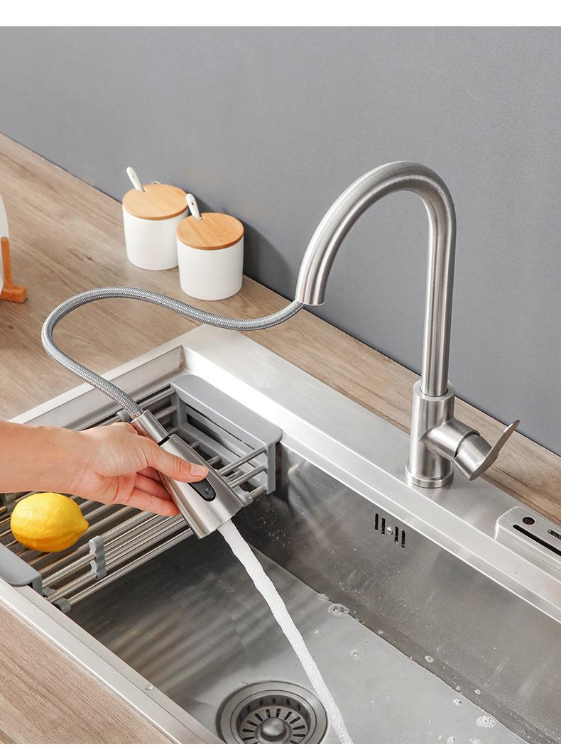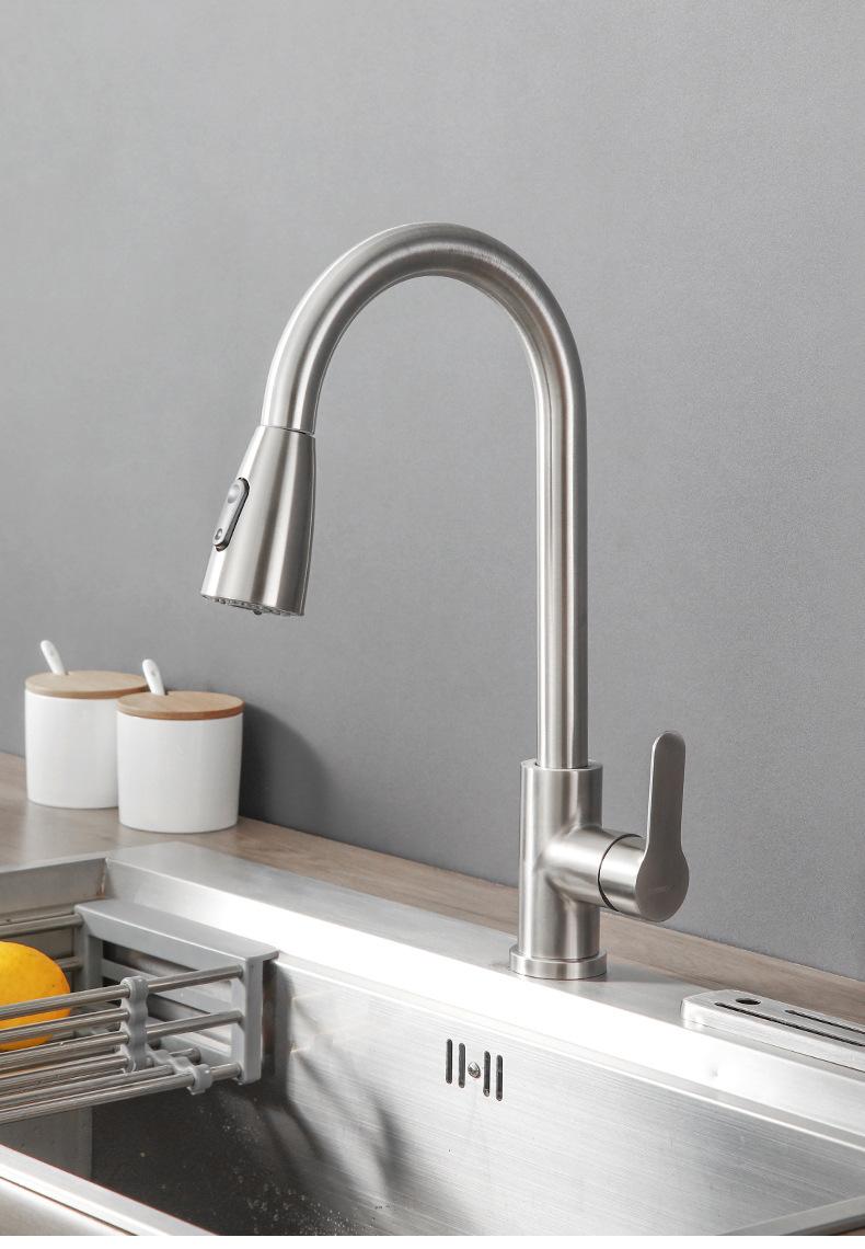 Grifo extraíble para cocina, de acero inoxidable, para lavabo, fregadero, doble agua, telescópico, giratorio, venta al por mayor