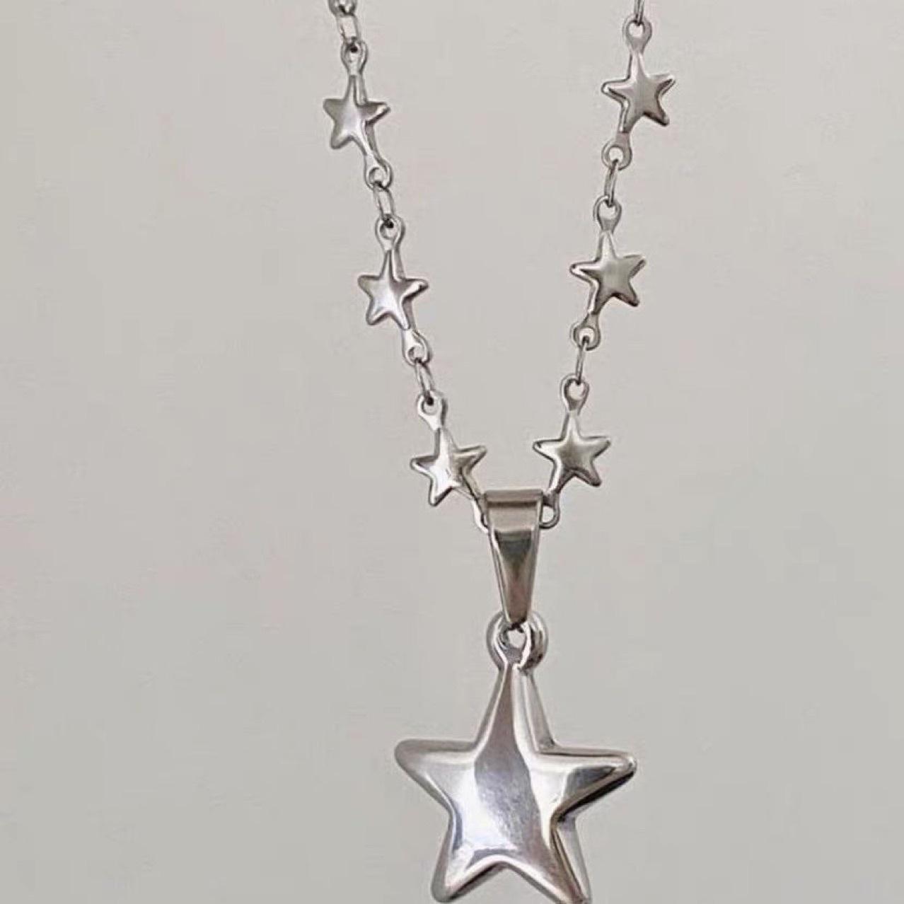 Collar con colgante tridimensional de estrella de cinco puntas versátil con diseño de nicho de cadena de estrella retro, estilo Y2G, para chica sexy, dulce y genial.