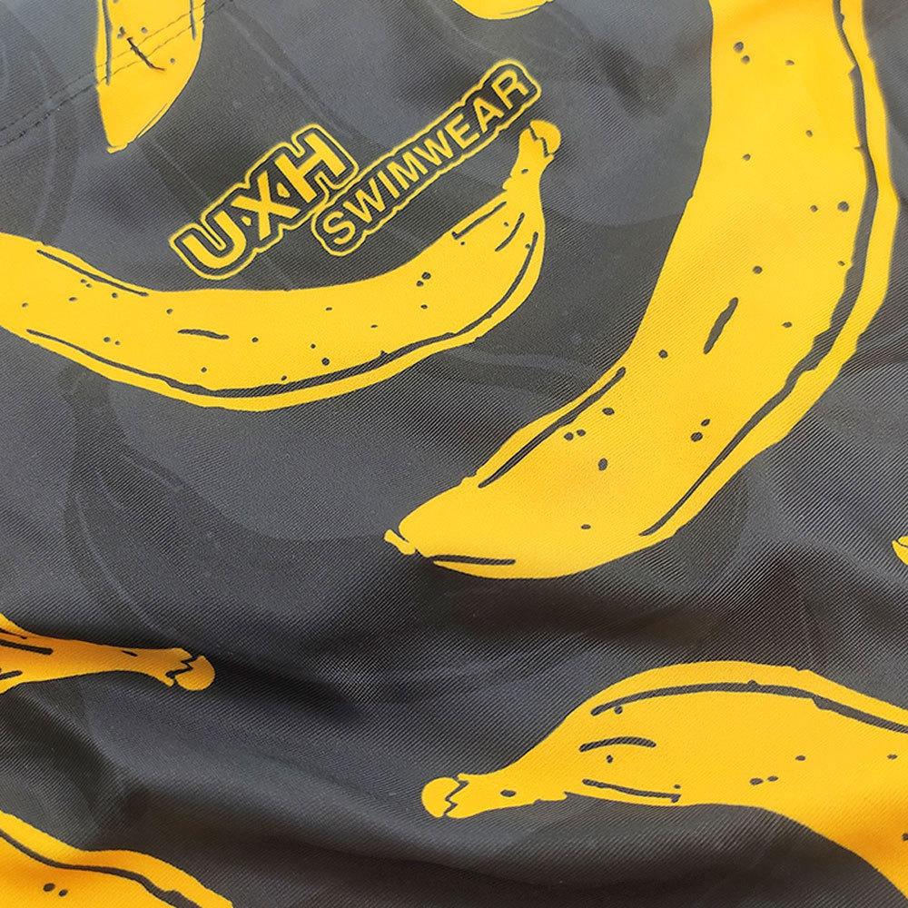 UXH nuevo traje de baño tipo bóxer para hombre con estampado divertido de plátanos, moda sexy, tendencia artística, shorts triangulares