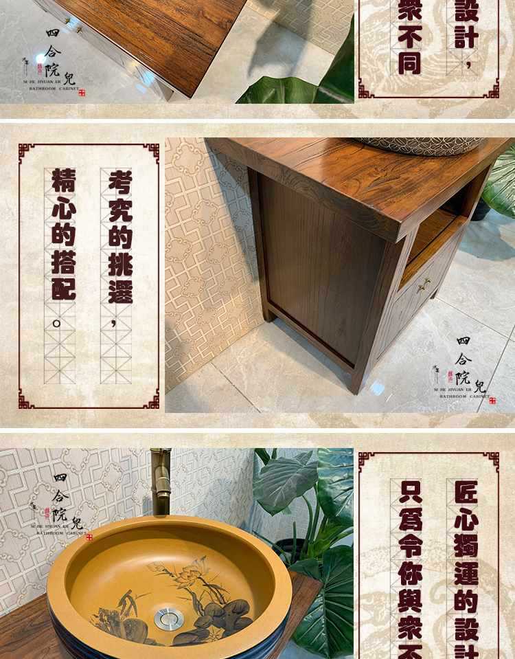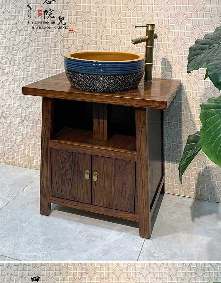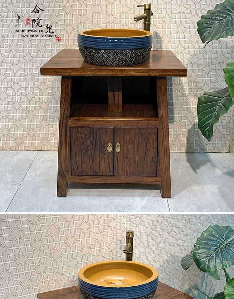 Compra Combinación de mueble de baño chino de olmo viejo de madera maciza, mueble de baño retro de pie para apartamento pequeño al por mayor en Joom.pro