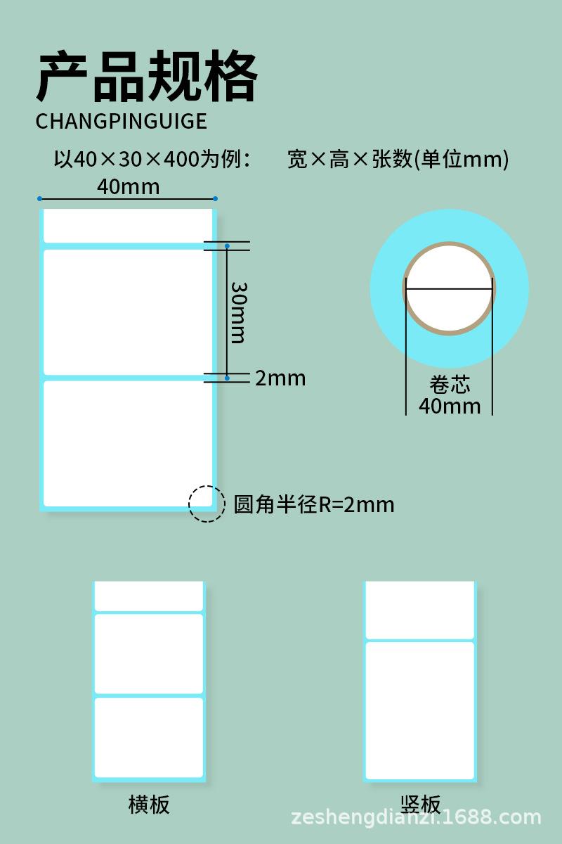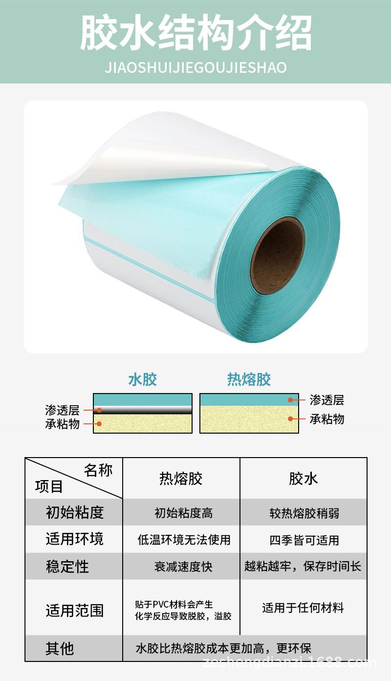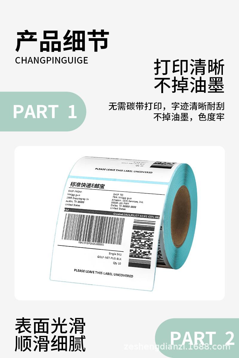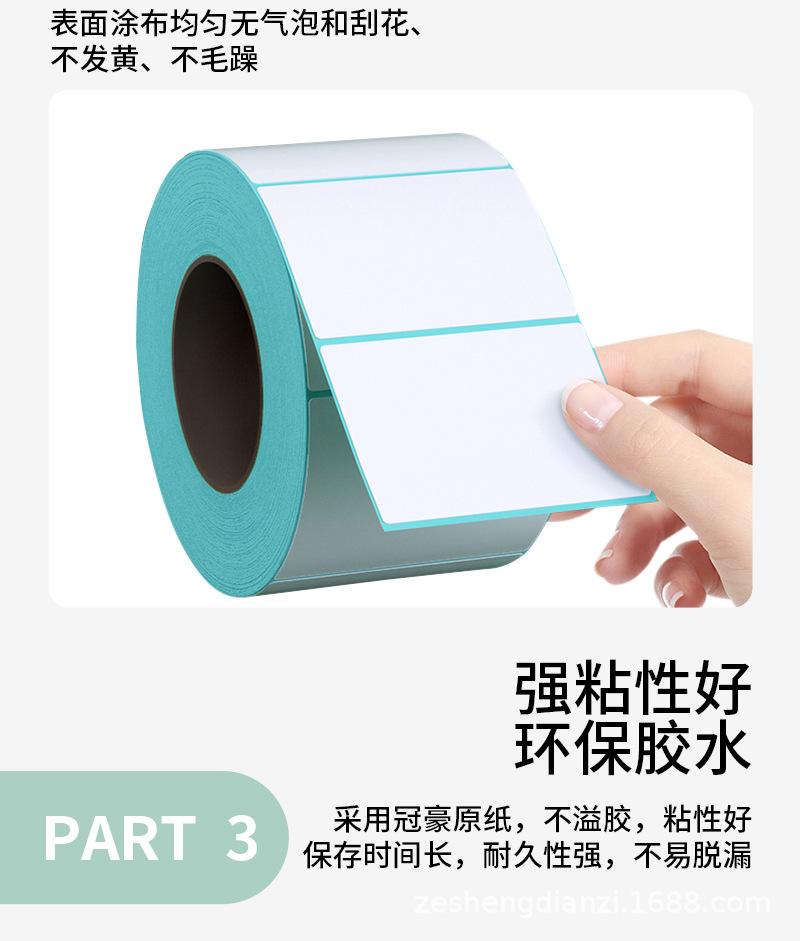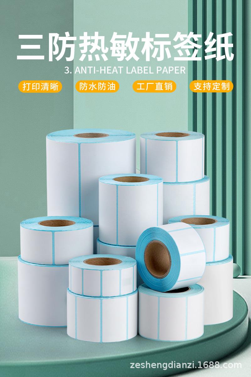 Papel de etiquetas térmicas, papel térmico adhesivo de tres pruebas, papel de impresión de código de barras 50x30, papel de etiqueta individual Express 100x100