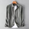 Compra Camisa informal de manga a rayas multicolor para hombre, de comercio exterior, de primavera y otoño de 2024, cómoda camisa de algodón y lino para hombre al por mayor en Joom.pro