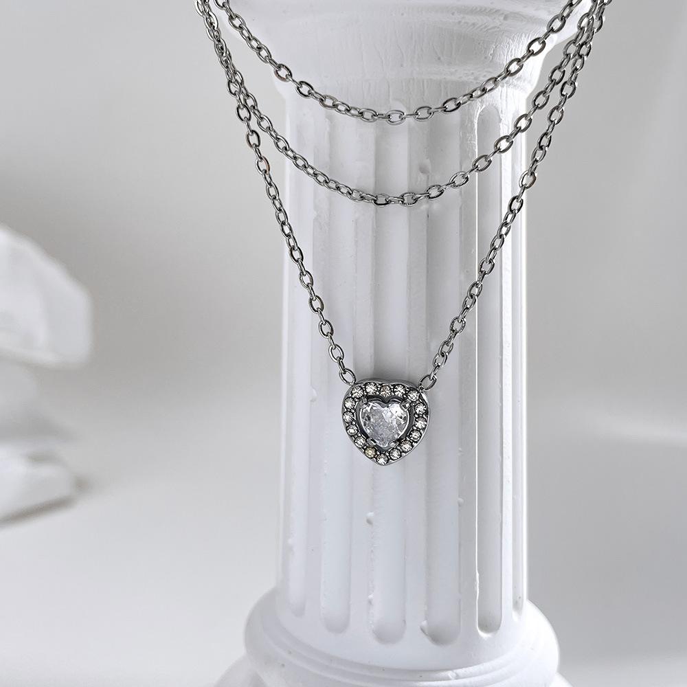 GE848-Steel Stud Earrings White Gold, GX2320-steel necklace white gold, GE848 GX2320 Stud Earrings Necklace suit