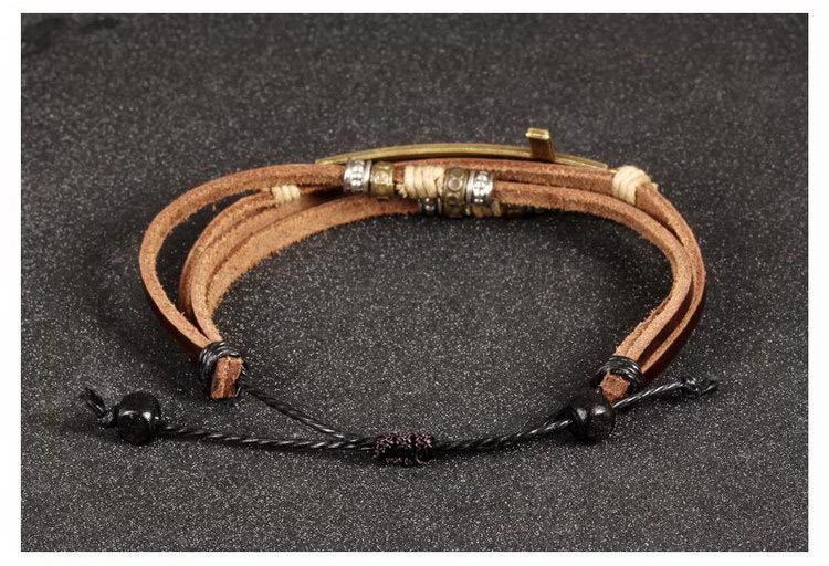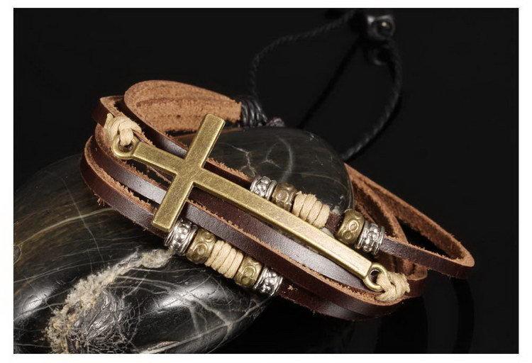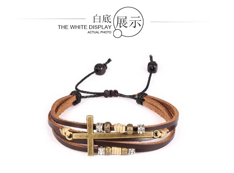 Pulsera de cuero con cuentas para hombre con cruz romana retro europea y americana directa de fábrica, moda hip hop, pulsera de cuero Joker