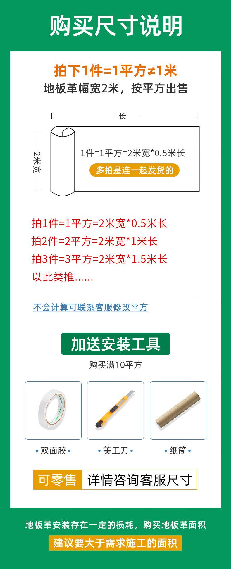1 square meter [ 2m x 0.5m ], 5 square meters [2 m X2.5 m]], 10 square meters [2 m X5 M]], 20 square meters [ 2m x 10m ]
