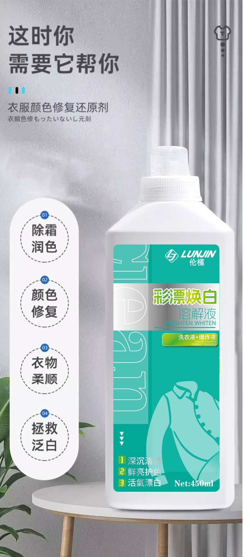 Detergente para ropa decolorante de color personalizado, Agente blanqueador para eliminación profunda de manchas, Agente abrillantador de ropa, Protección del color para el hogar